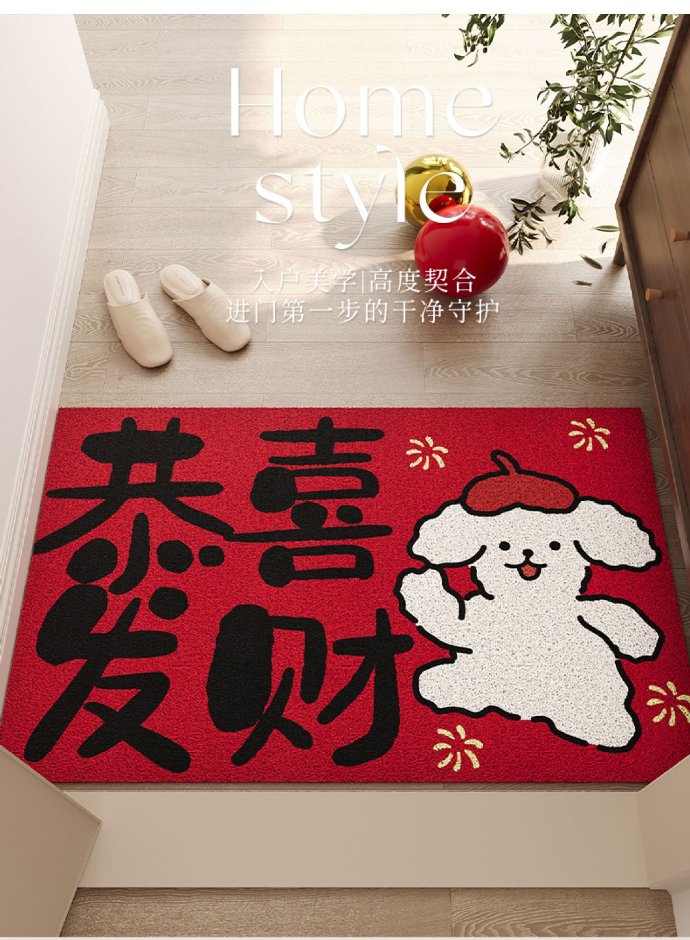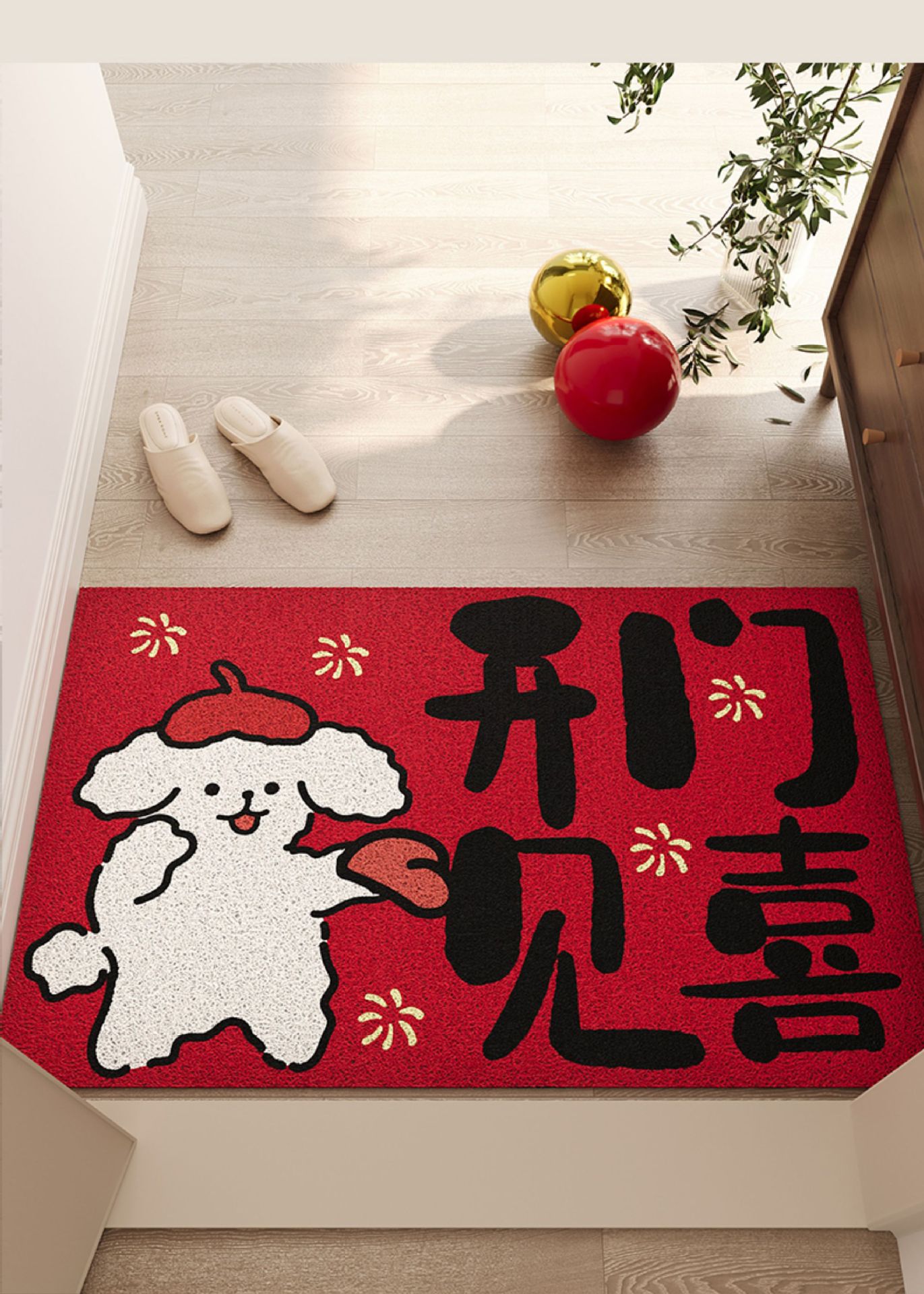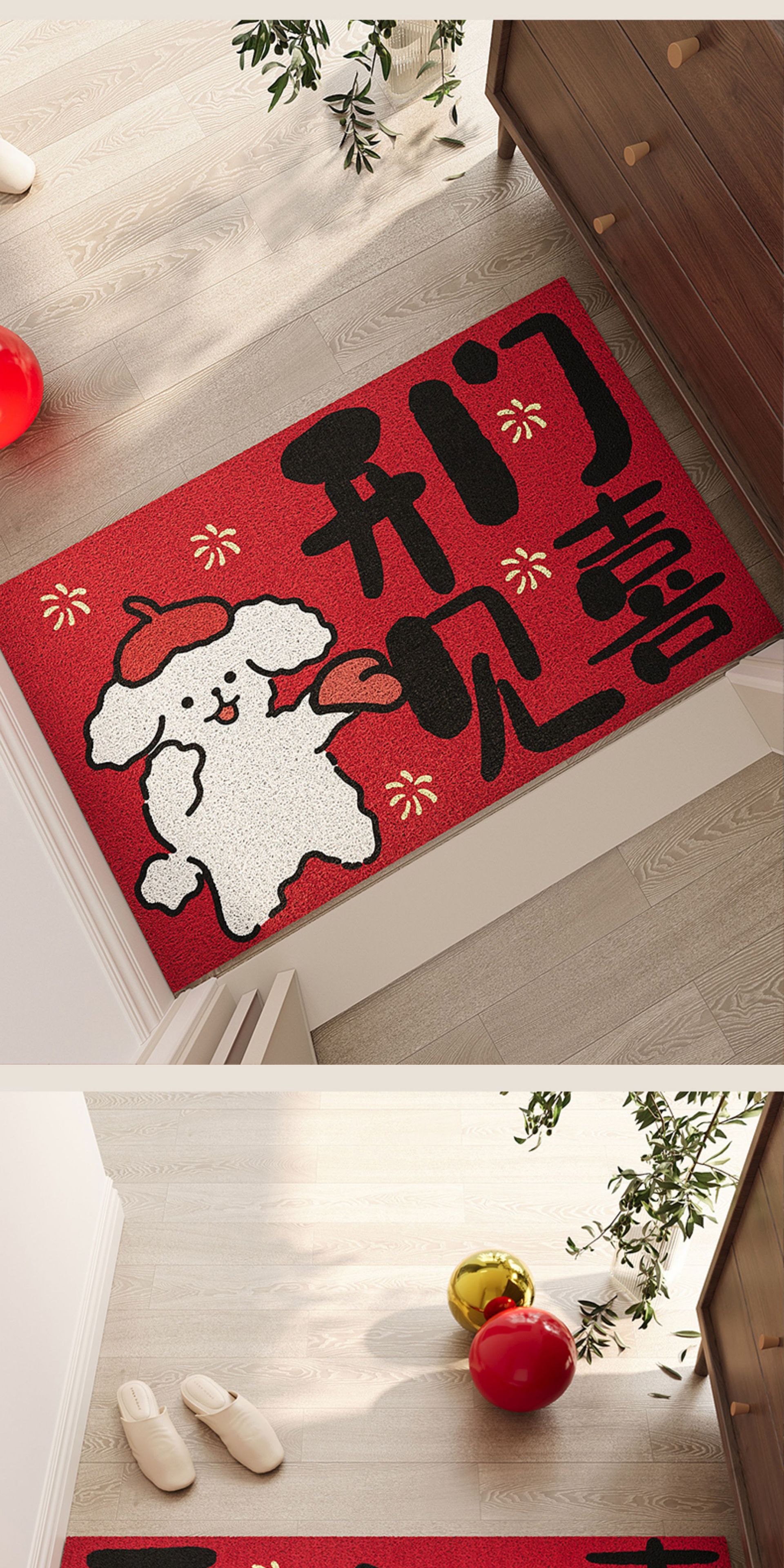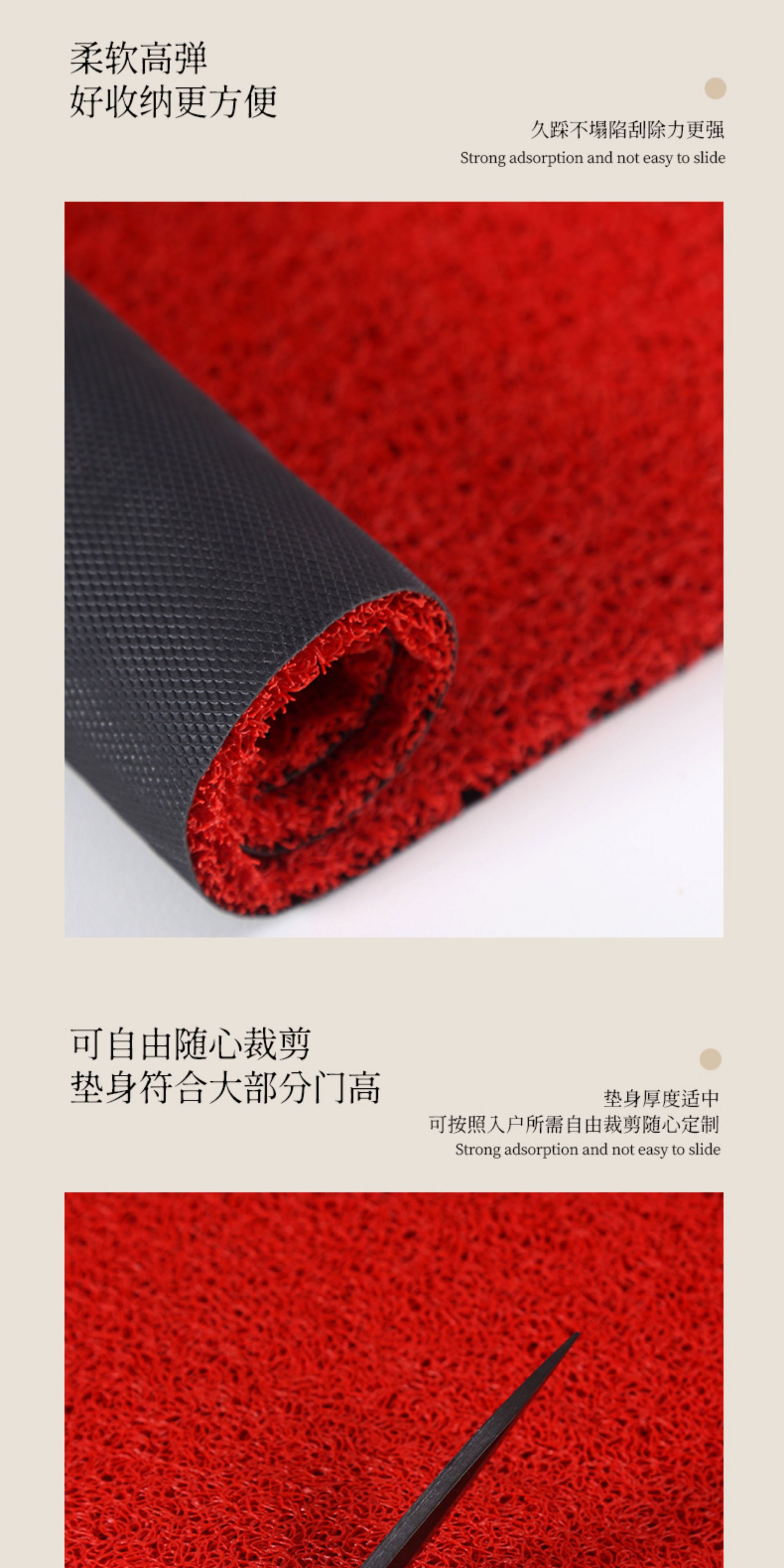 红色入户门地垫玄关PVC丝圈大门口进门脚垫防滑除尘喜庆刮泥地毯