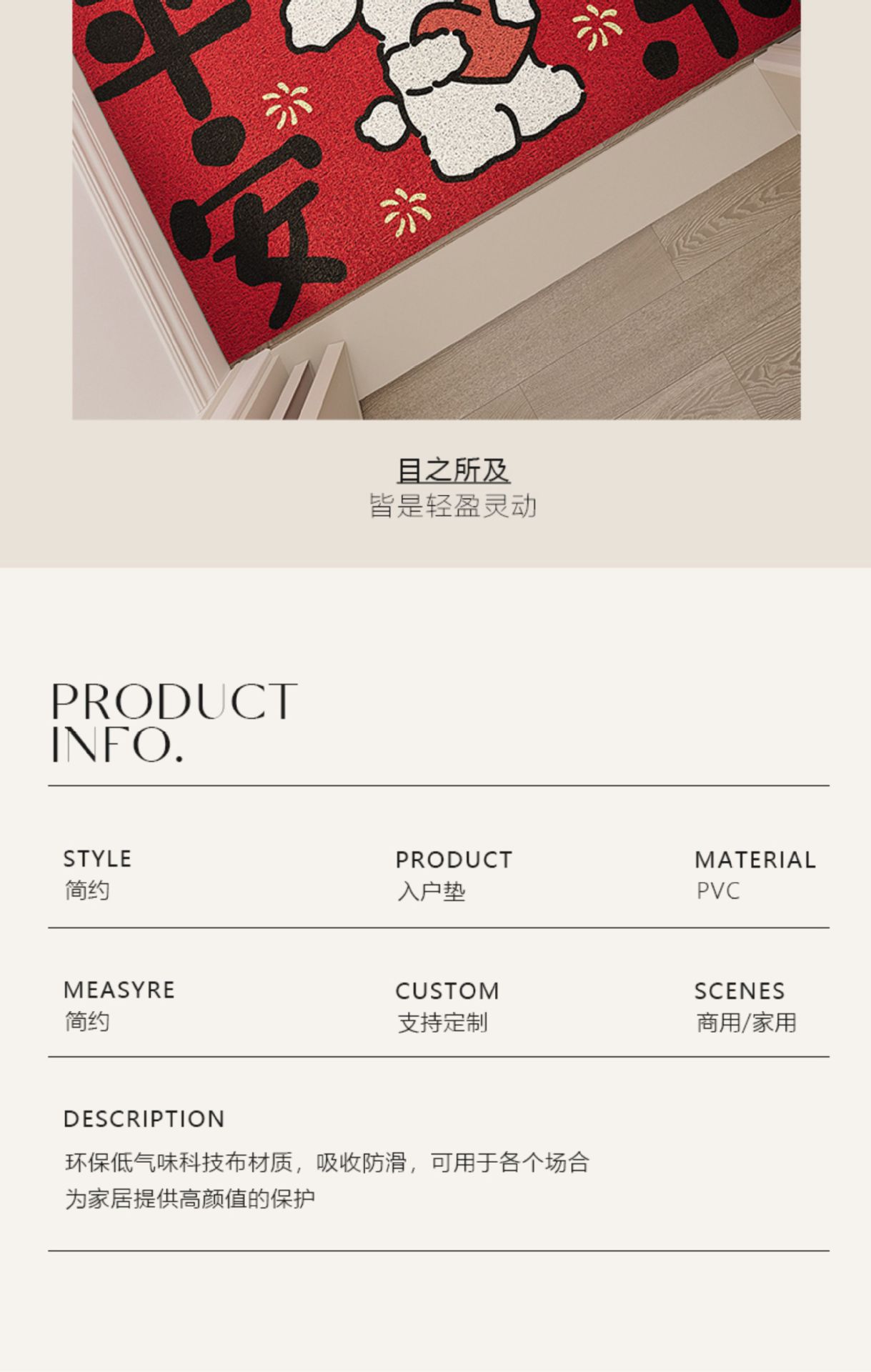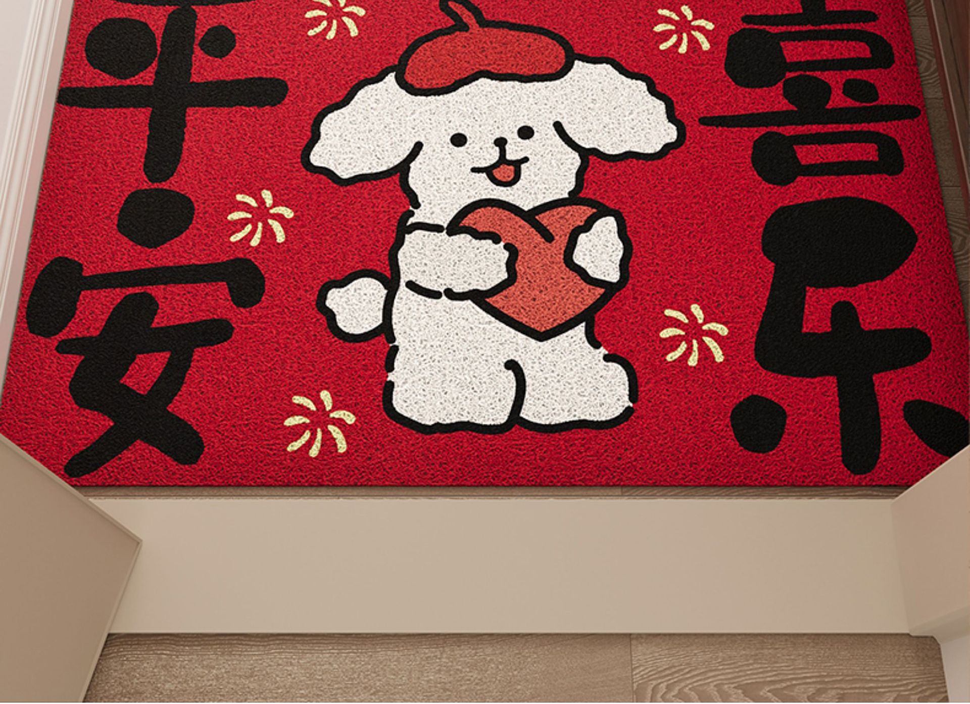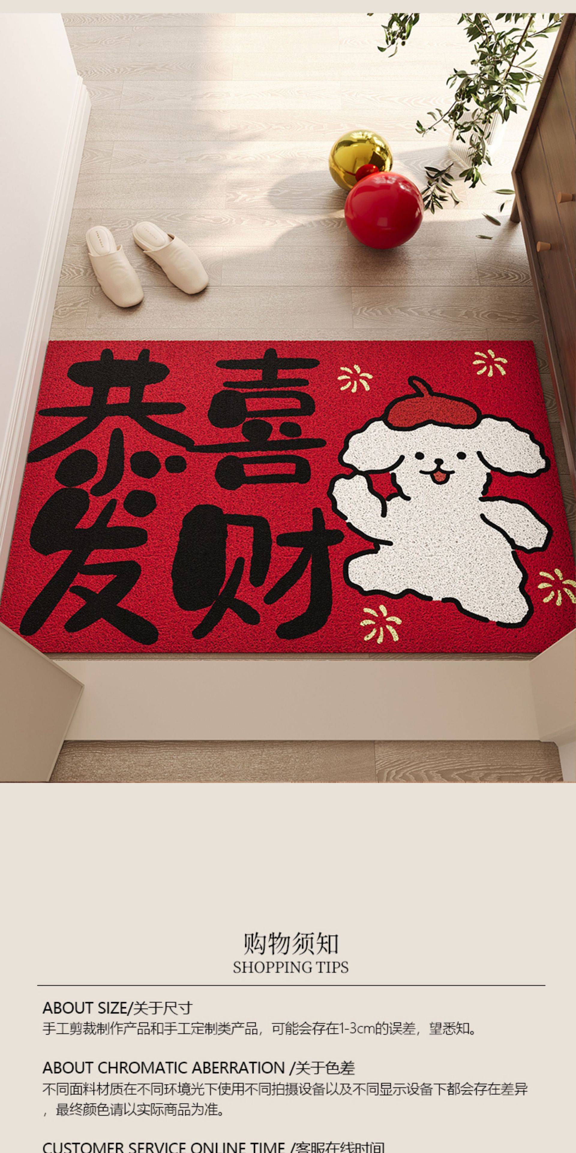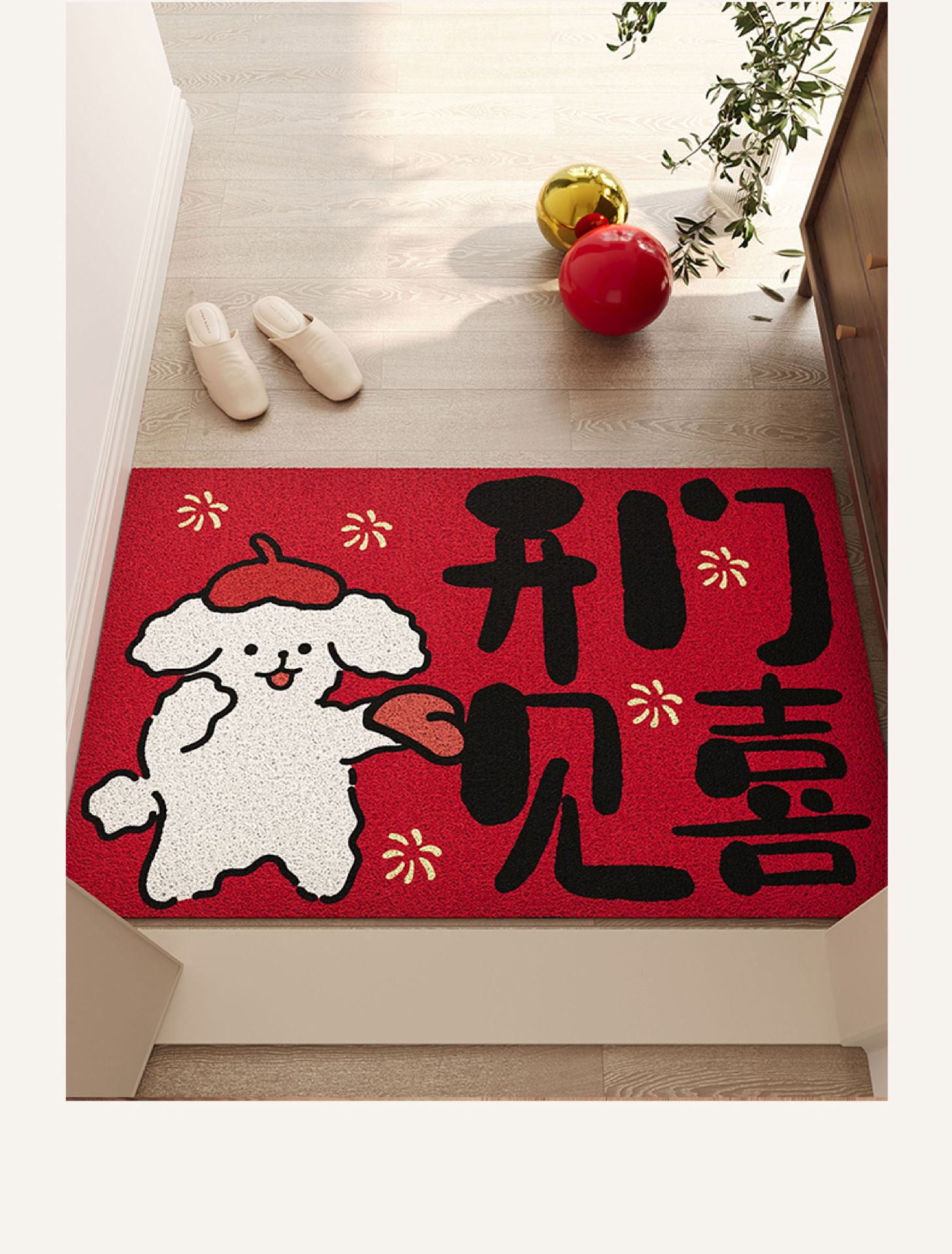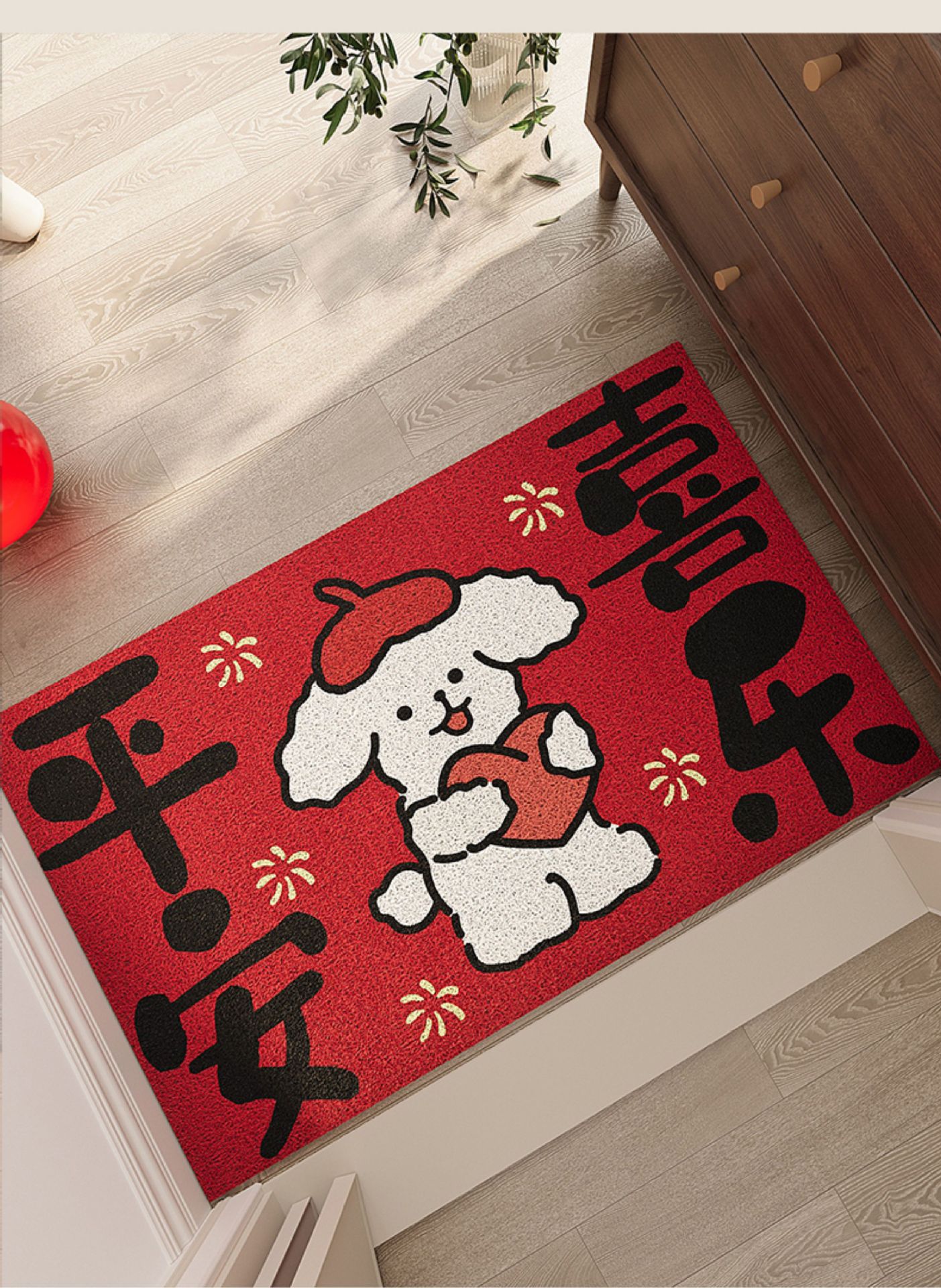 红色入户门地垫玄关PVC丝圈大门口进门脚垫防滑除尘喜庆刮泥地毯