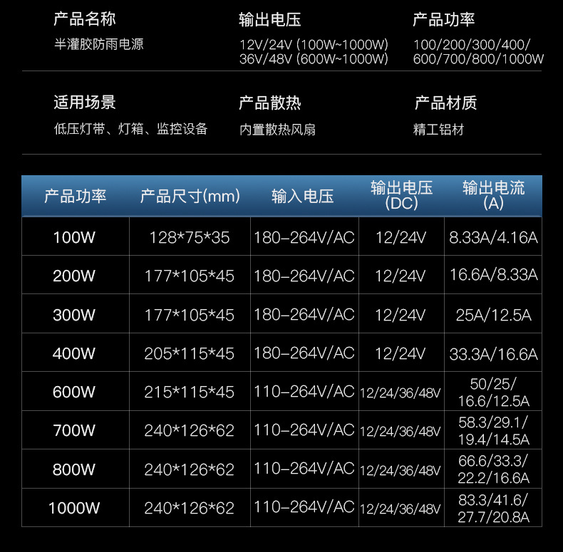 [ 商业 ] LED防雨开关电源半灌胶户外工程亮化12V24V36V48V广告牌开关电源