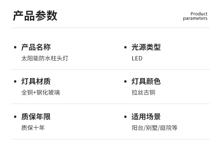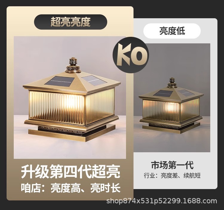 户外柱子灯防水全铜别墅门柱灯花园围墙照明灯庭院太阳能柱头灯