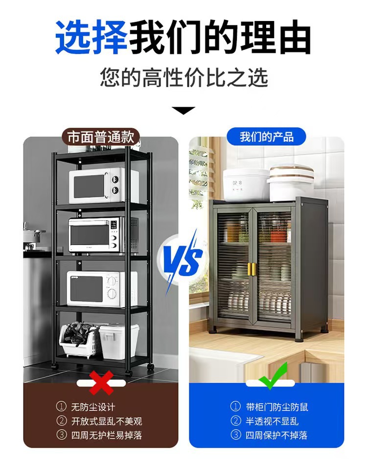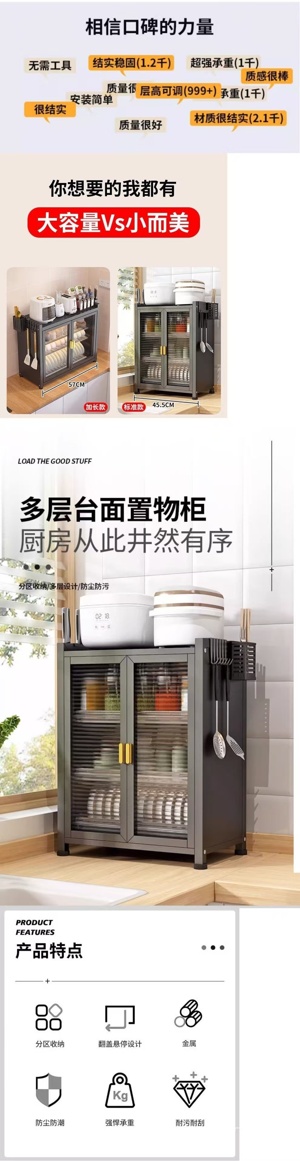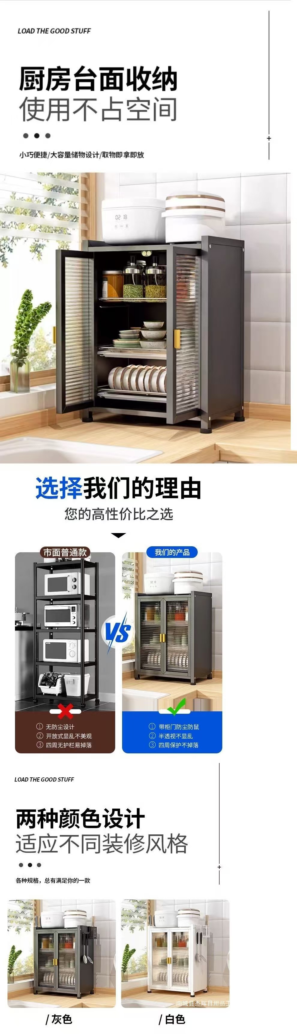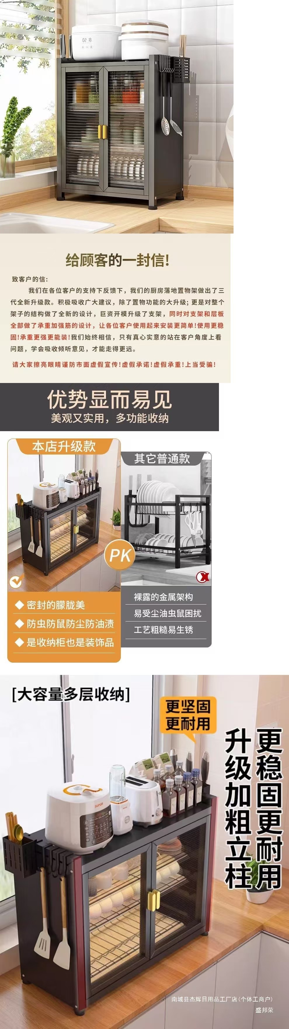 厂家批发多层收纳柜带柜门防尘橱柜多用途碗碟收纳柜置物储物收纳