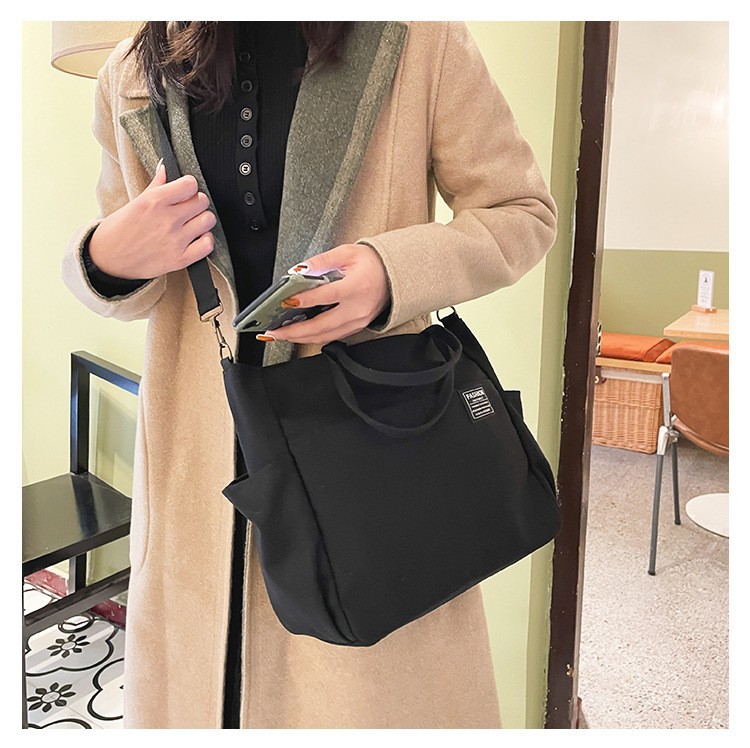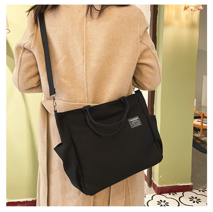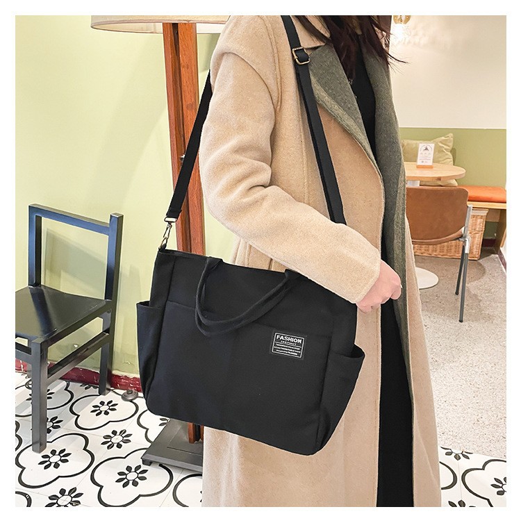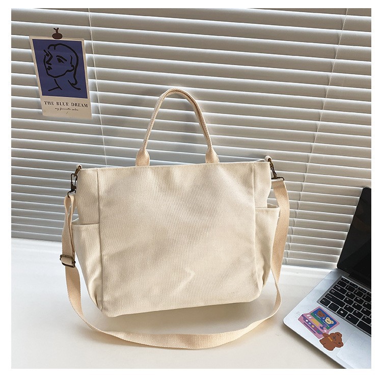 帆布包女日系清新多口袋托特包简约百搭文艺大容量单肩手提斜挎包