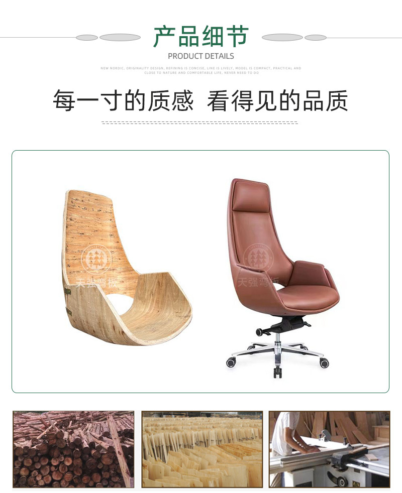 电脑家用书房办公椅 会议洽谈升降旋转桉木弯板 真实木纹触感板材