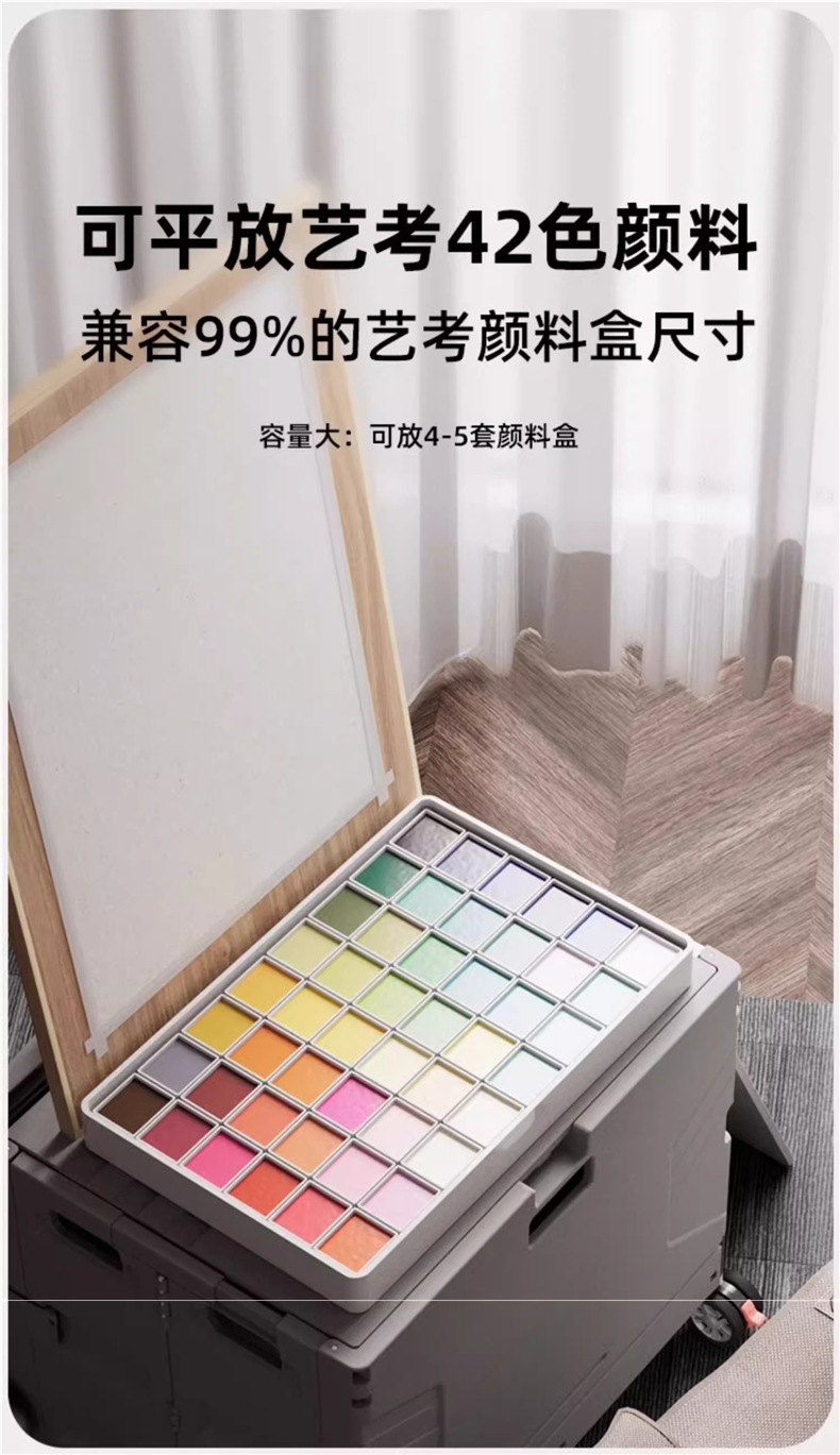 推荐理由:这款美术生专用折叠画箱,是您专属的“移动画室”。它巧妙融合画板、画架与储物功能于一体,配备万向轮和拉杆,移动轻松自如。坚固材质与人性化设计,为户外写生和艺考提供稳定可靠的创作平台,让您随时挥洒灵感。