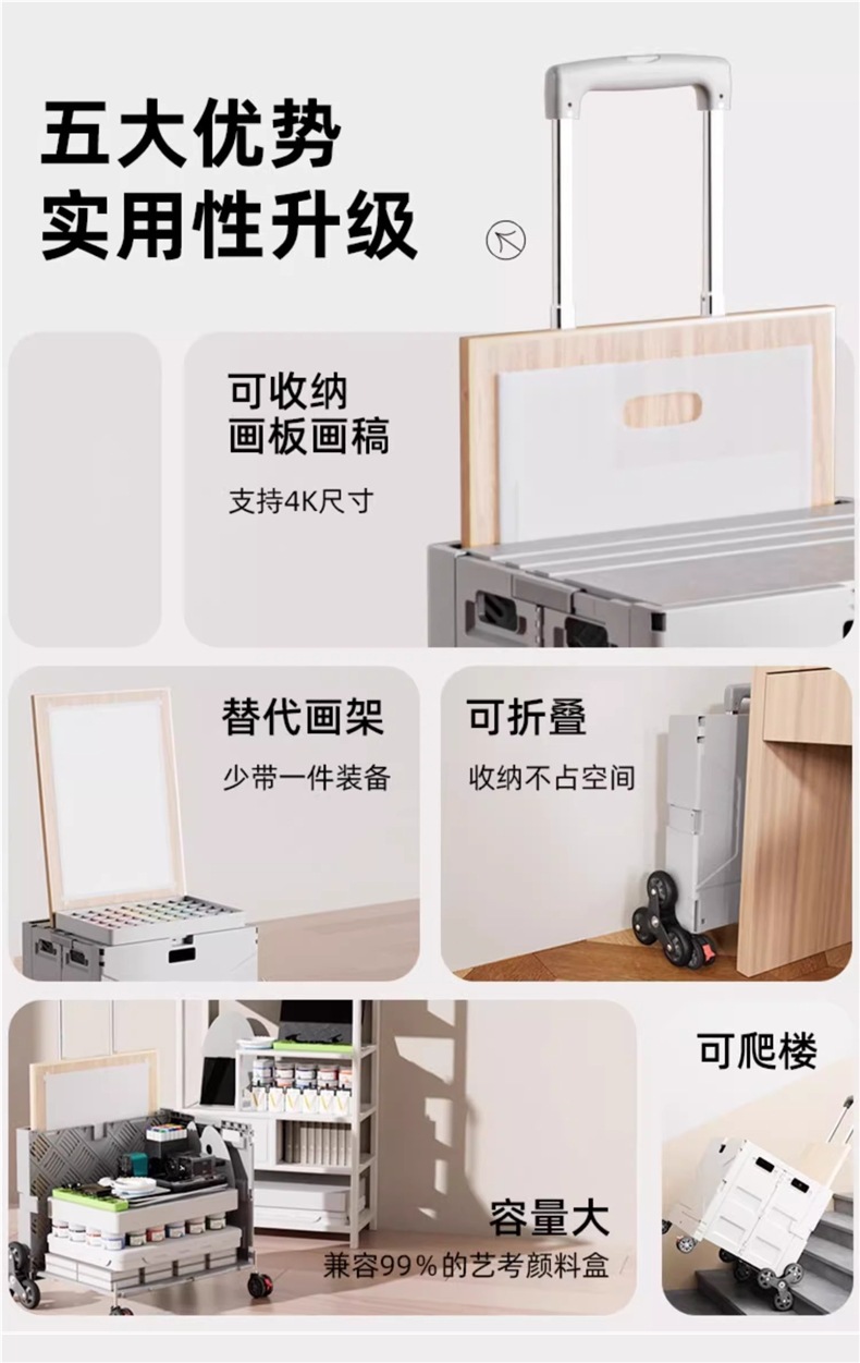 关键词:美术生专用 折叠画箱 画车画板 艺考小推车