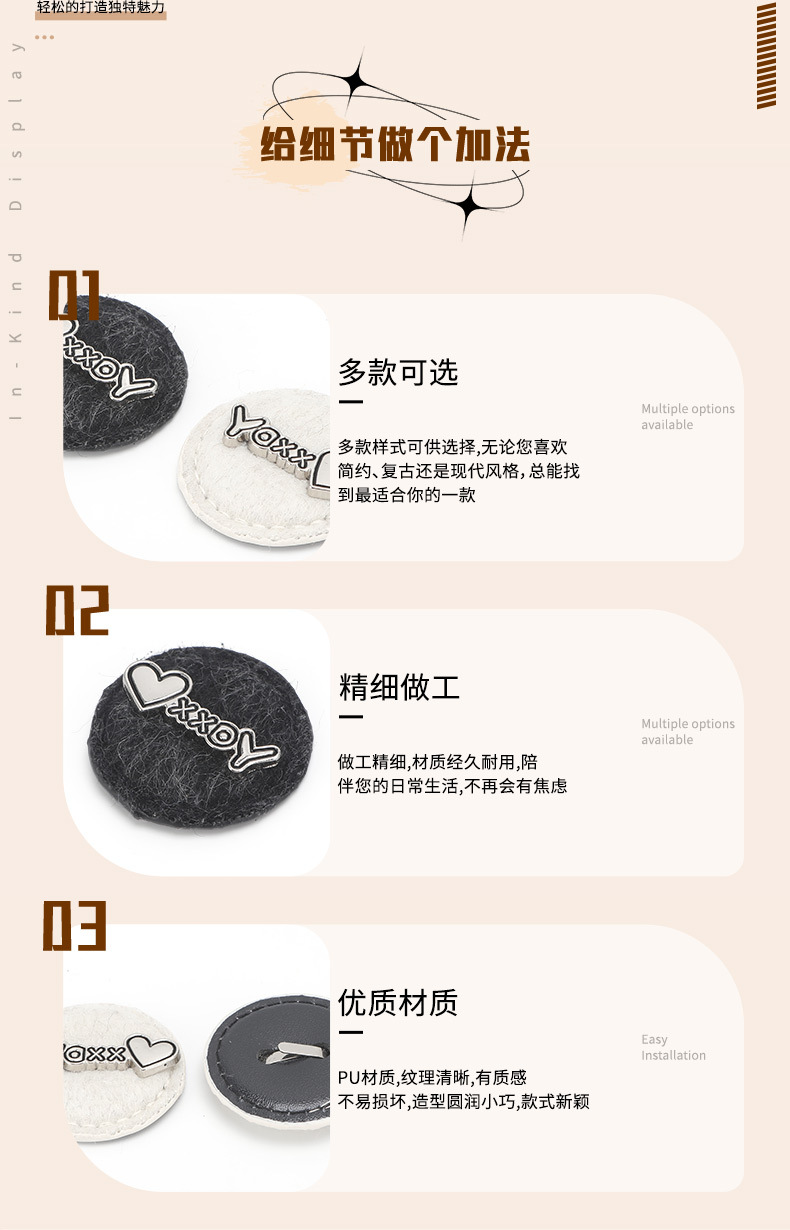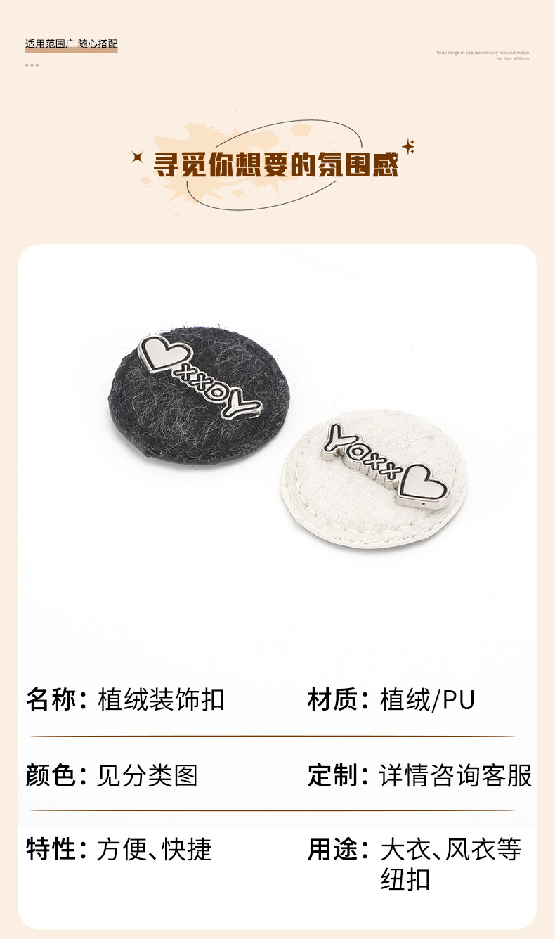 秋冬植绒圆形装饰纽扣毛呢大衣毛衣简约百搭手缝扣装饰辅料配件