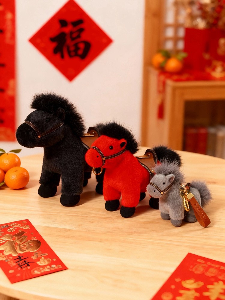 马年吉祥物新年装饰礼品小马马鞍公仔玩偶八骏马毛绒玩具挂件礼品