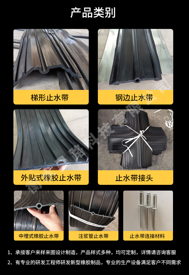 橡胶件加工防水密封接头材料U型抱箍钢边橡胶丁字十字止水带接头