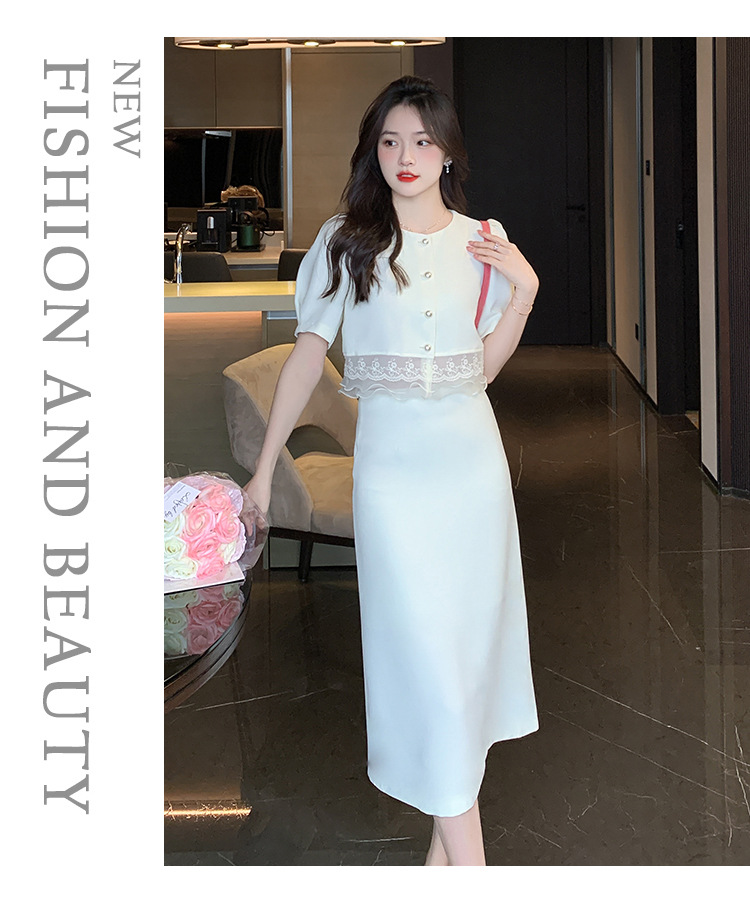 2023夏季新款高级感甜美圆领荷叶边网纱拼接遮肉显瘦长款两件套裙