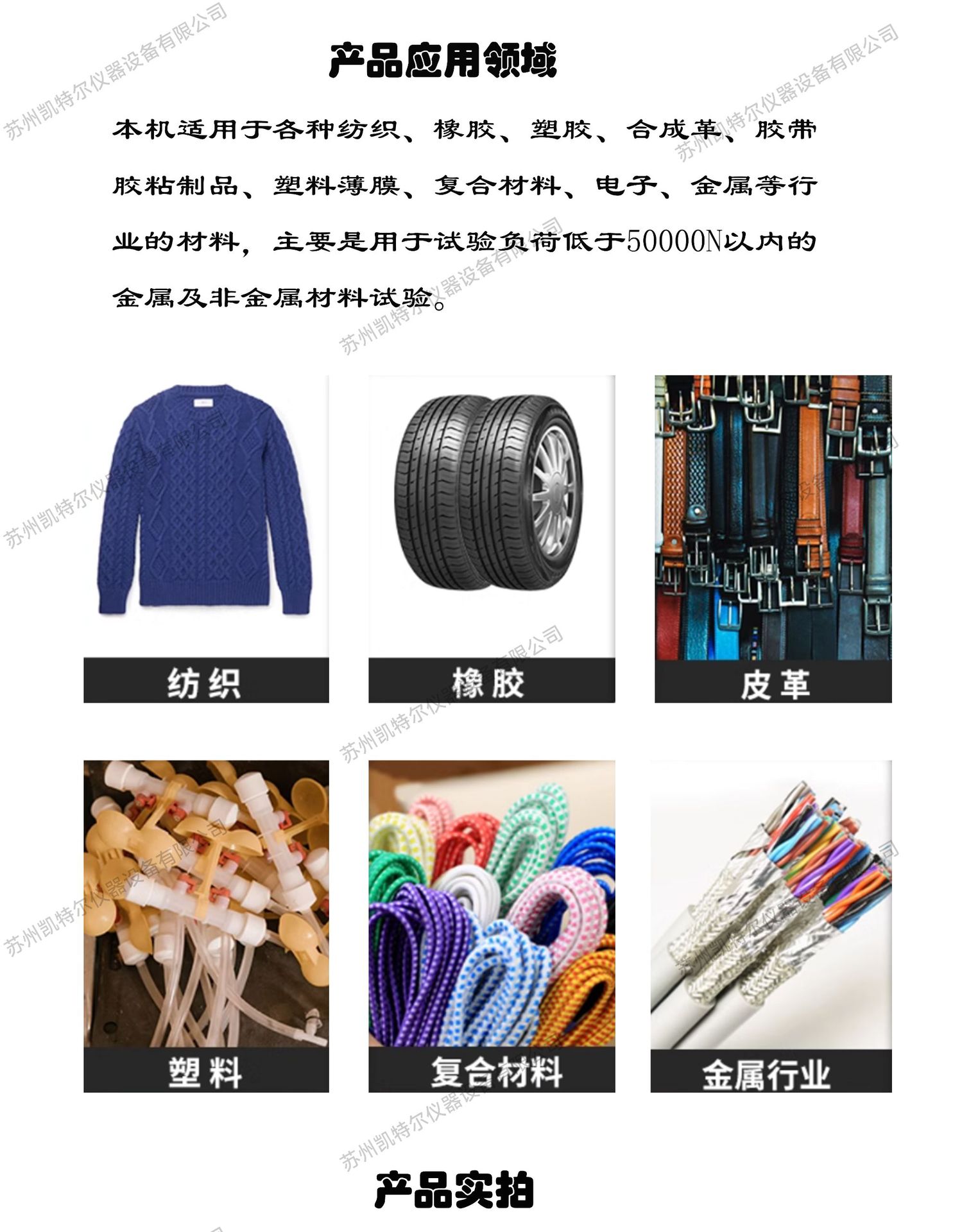1.3.本试验机适用之工业包括:橡胶、塑胶、鞋业、造纸、包装、机械五金、建材、汽车零件、电线电缆等行业,适用产品如:自行车、机车、球拍、球棒、建筑五金等材料、零件、链条、齿轮、钢材、陶瓷、复合材料、塑胶、绵纱、不织布、织带、电线等制品,均可作物性检验。