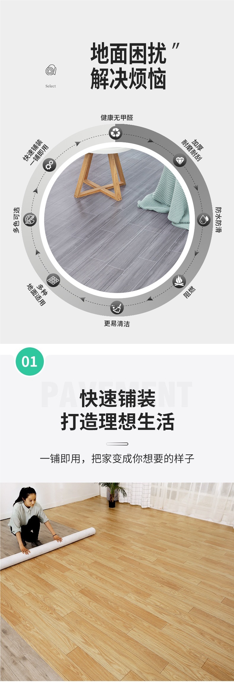 地毯卧室客厅大面积全铺贴地垫胶加厚房间家用PVC塑料地板革
