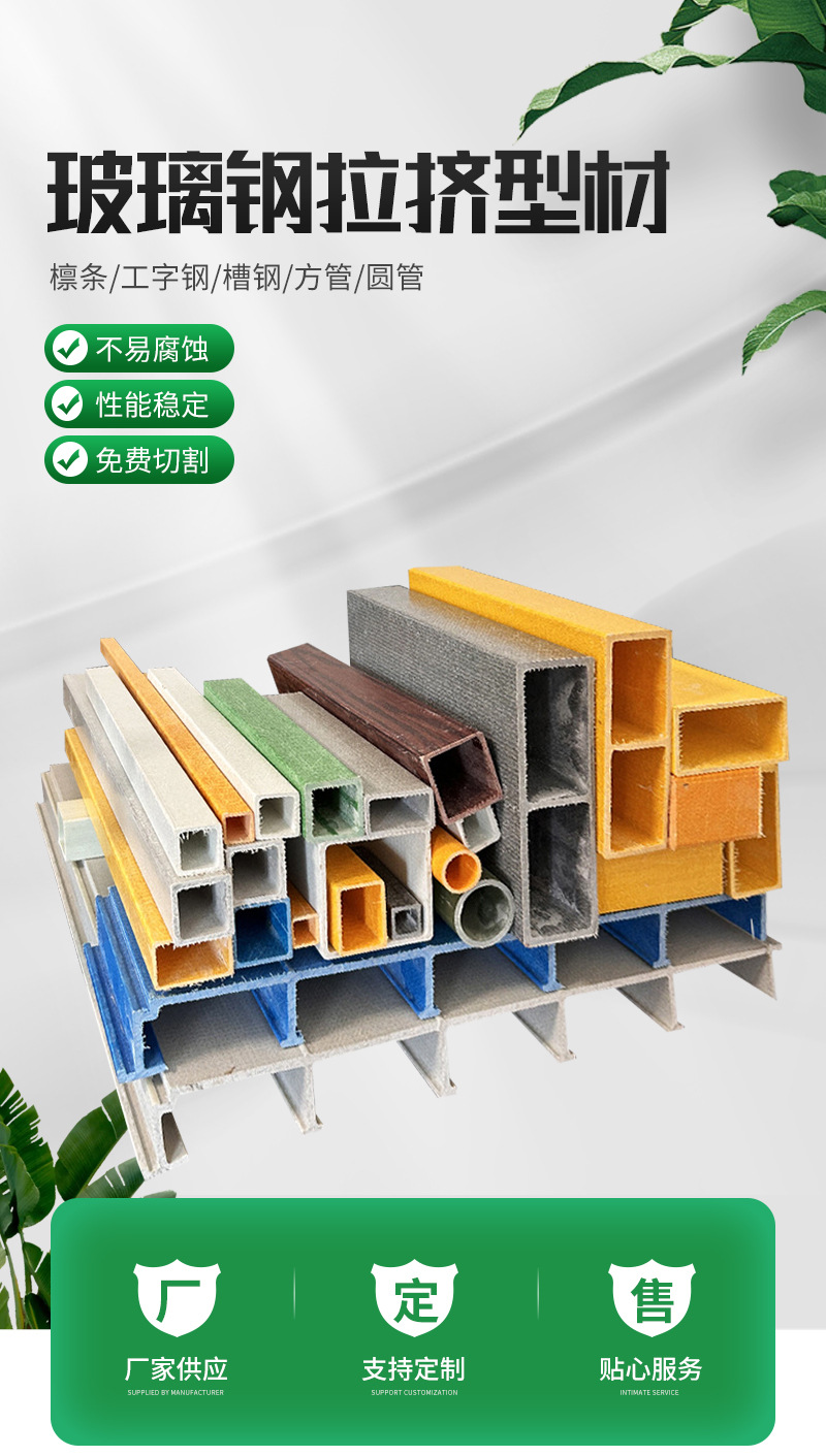 玻璃钢拉挤型材介绍特点及性能良好的尺寸稳定性热固性树酯基体在加工过程受热作用发生交联形成体型网状结构,其制品在常态下尺寸稳定好,成型之后发生的后收缩性也小。制品在长时间的连续载荷作用下其形状和尺寸变化极小即蠕变性小。其蠕变性能取决于载荷的大小,温度高低和加载时间的长短诸因素。在固定的载荷和温度条件下,长时间加载后热固性塑料的蠕变量要比热塑性塑料小得多。