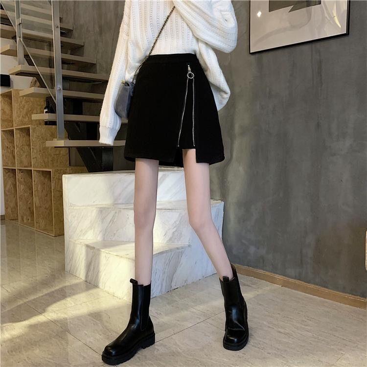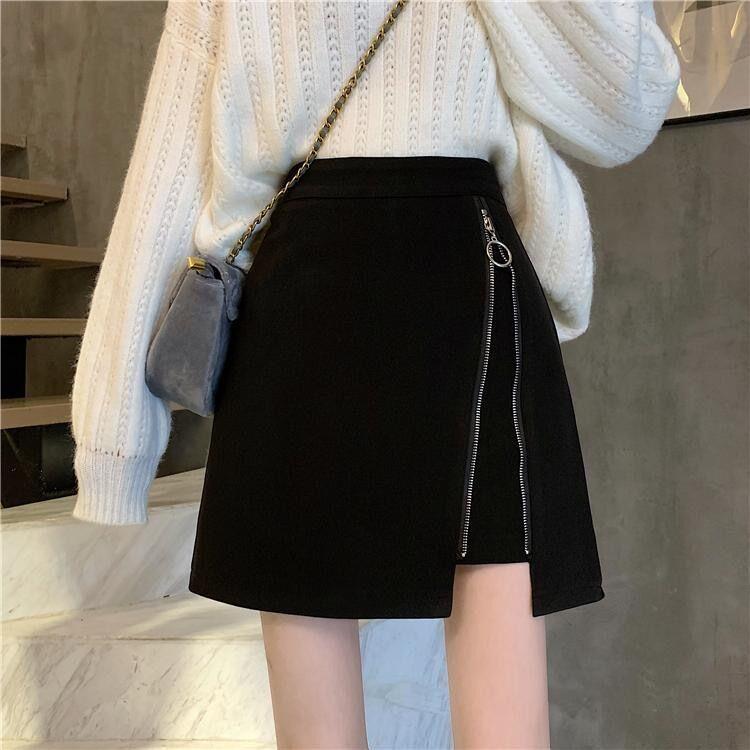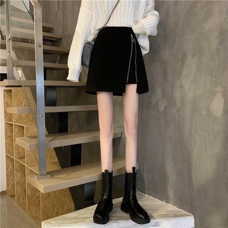 2024秋冬新款小心机毛呢半身裙女高腰有内衬短裙黑色A字裙包臀裙