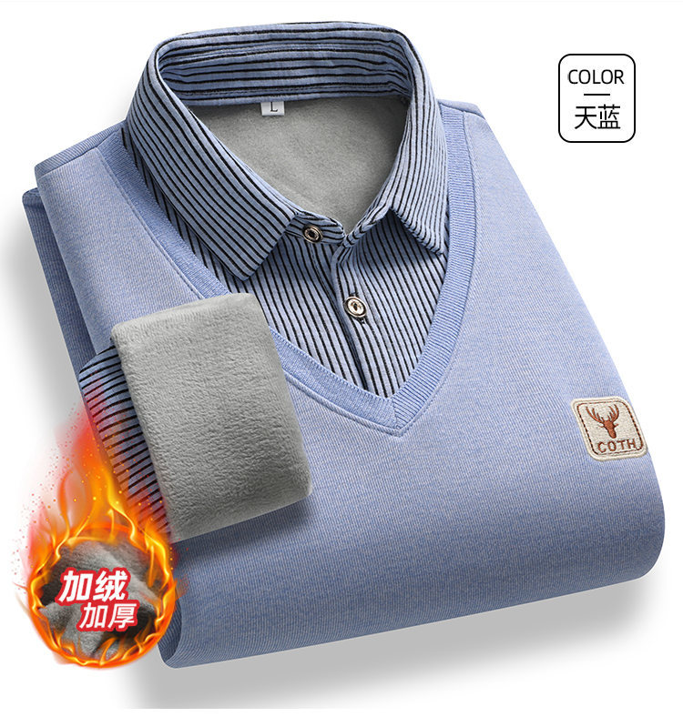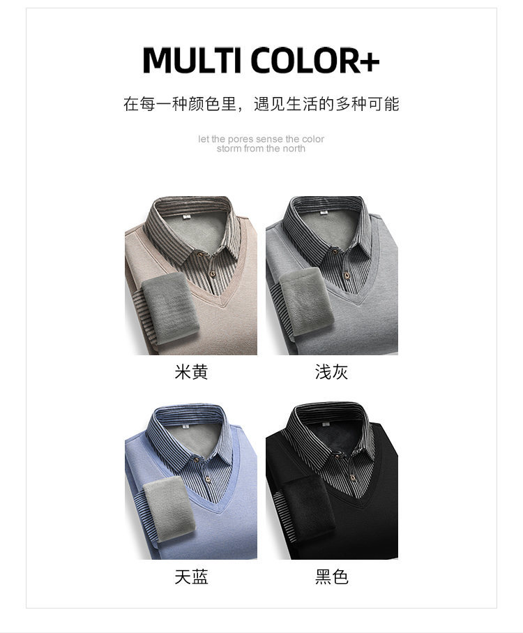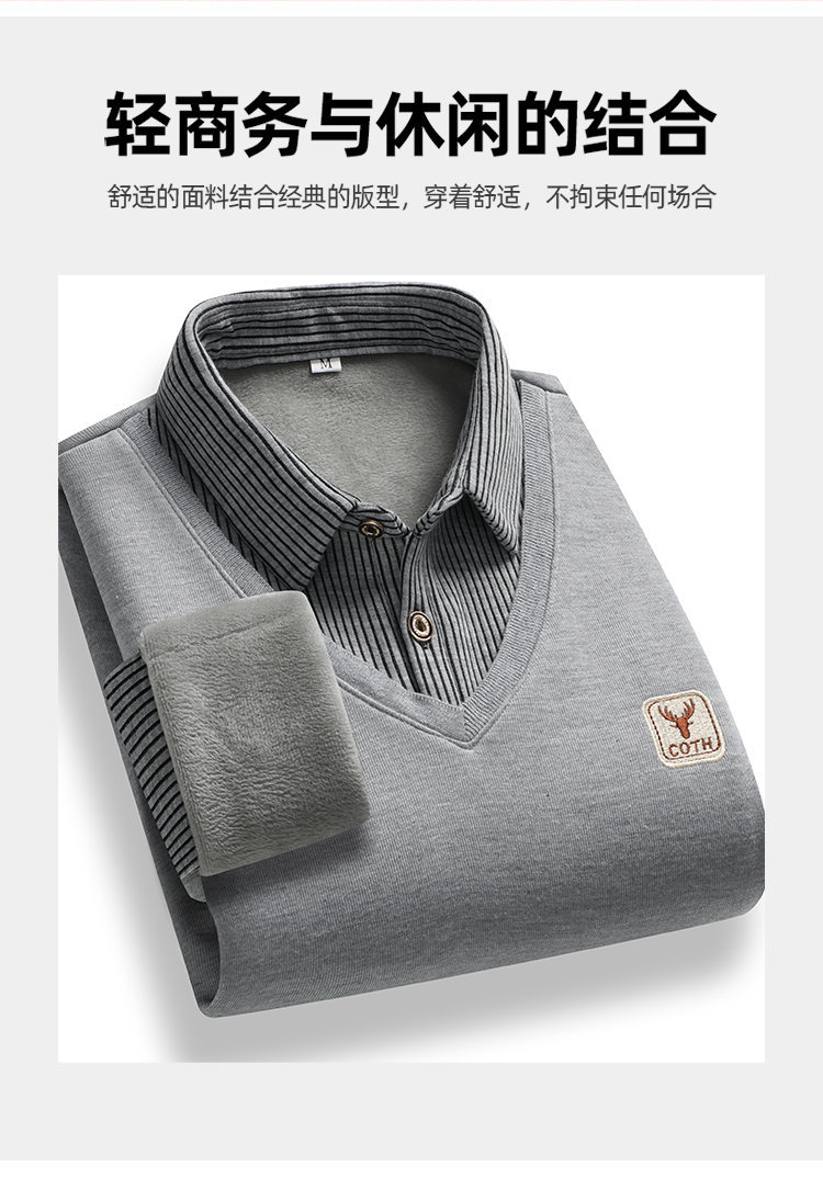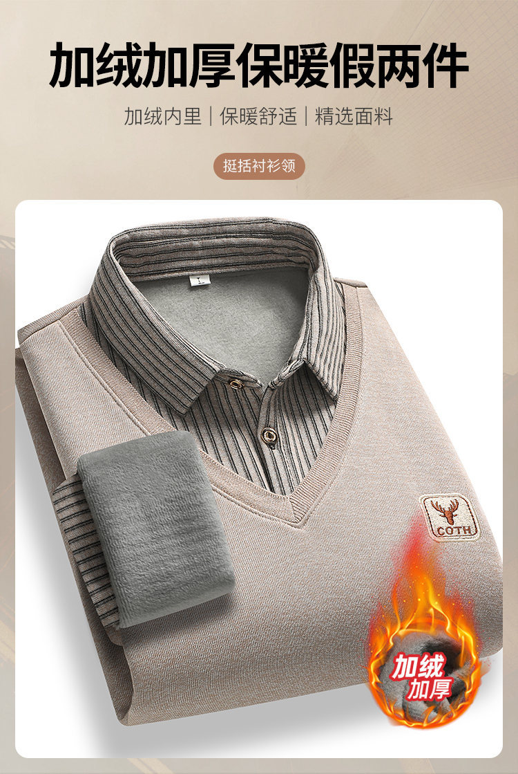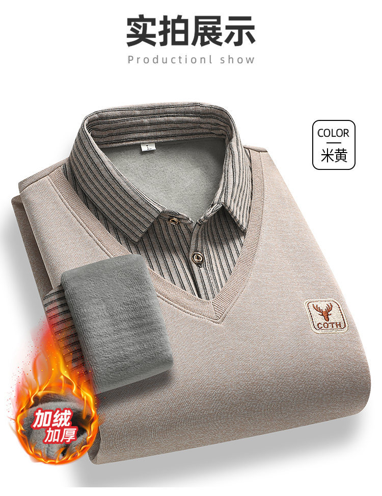 一件代发批发高转化率秋冬季男士假两件毛衣男长袖衬衫中老年人