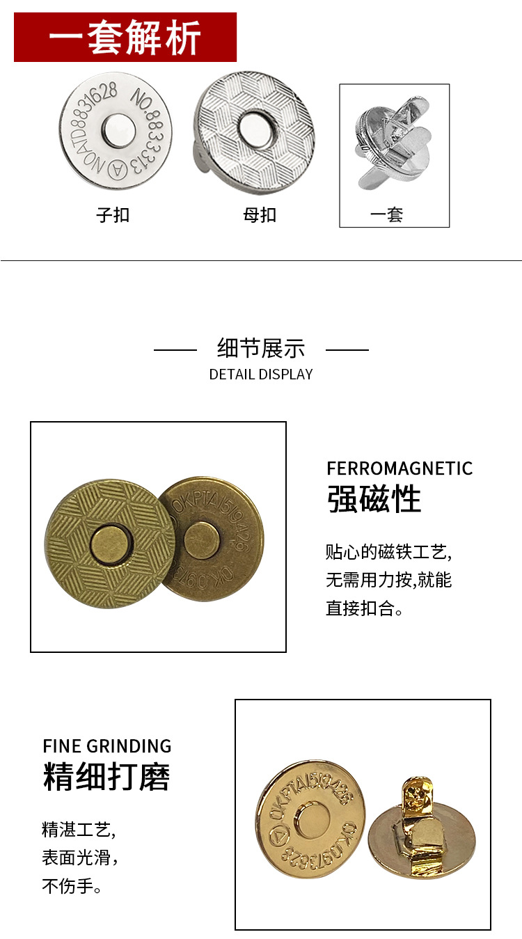 无痕免缝包包钮扣14mm超薄磁扣金属强力磁吸扣双脚磁钮磁铁扣配件