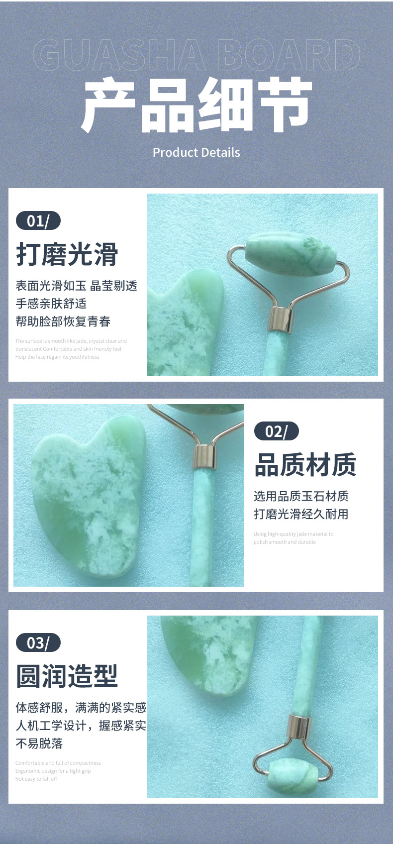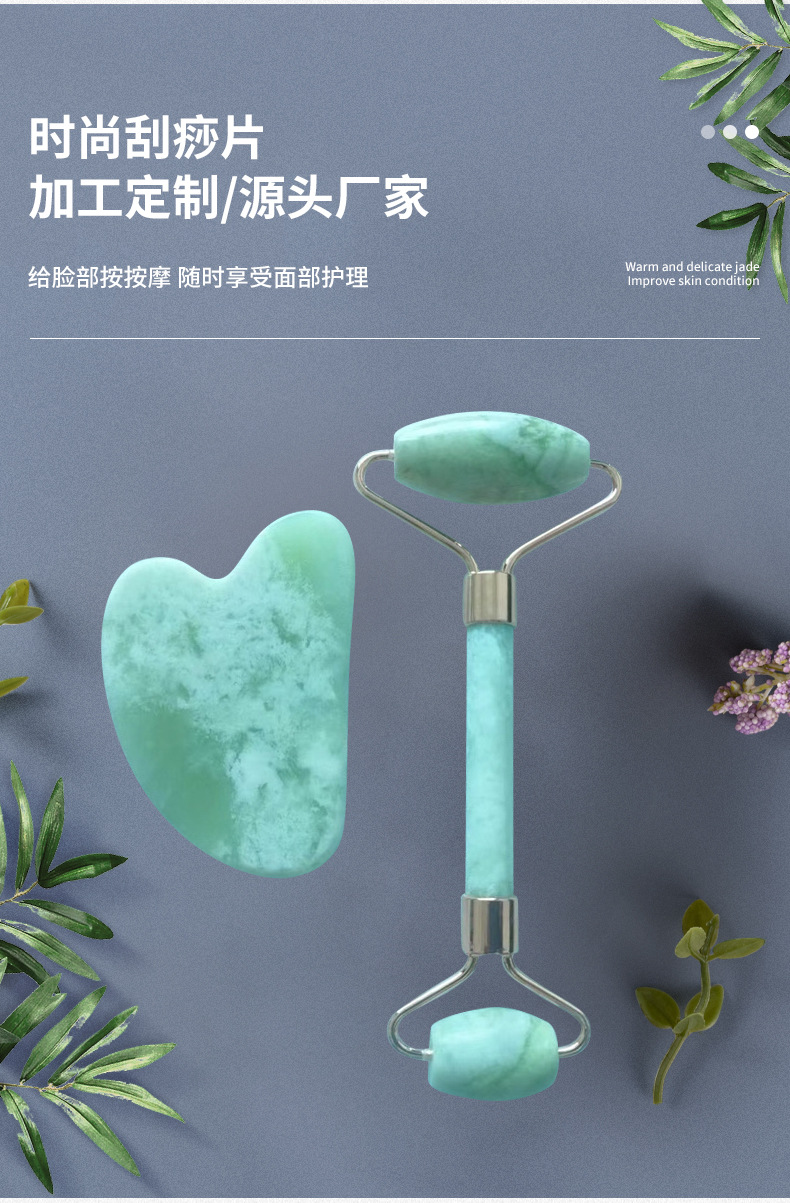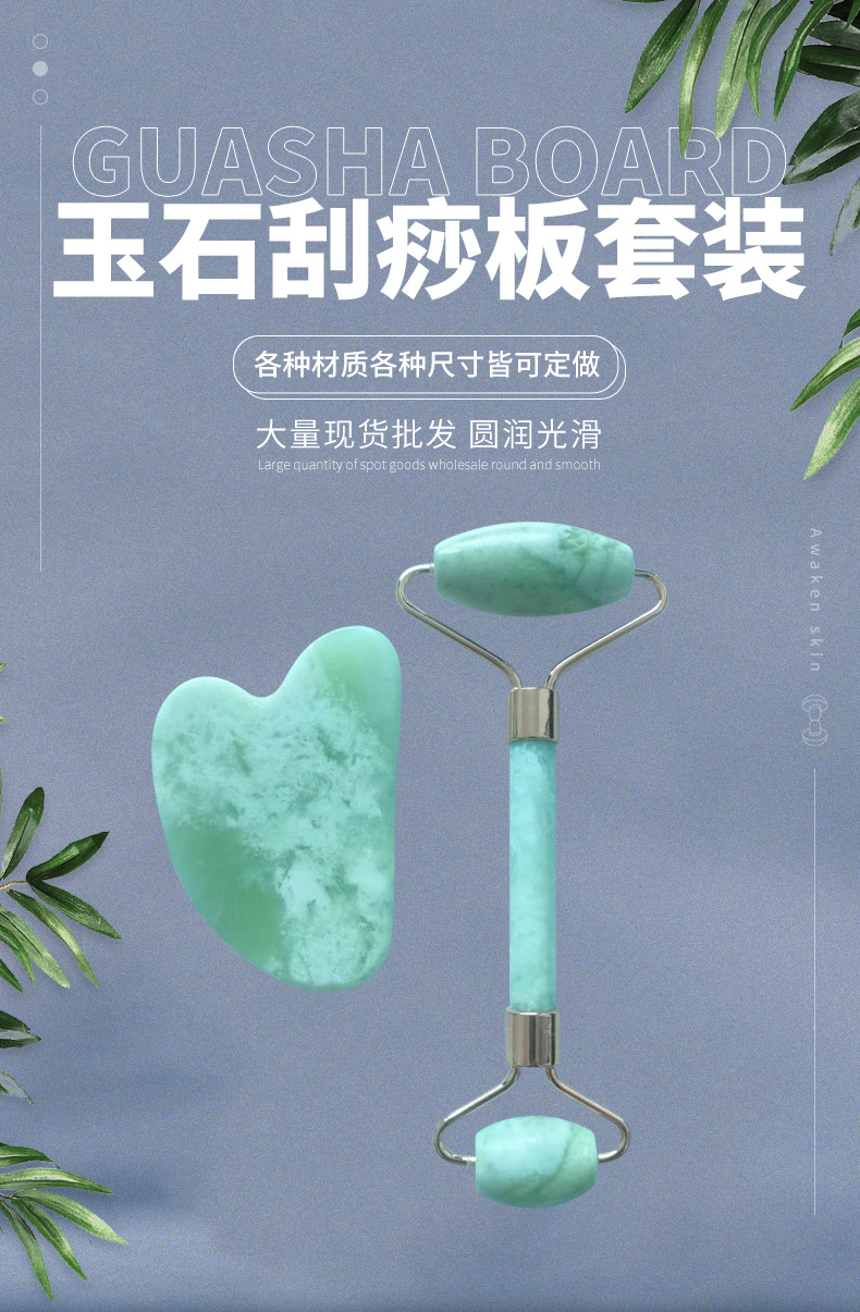 厂家批发玉石按摩器套装 脸部按摩滚轮刮痧按摩板 玉石滚轮按摩棒