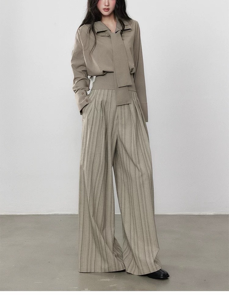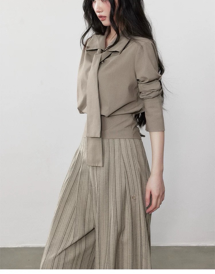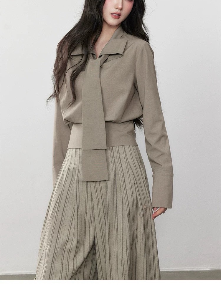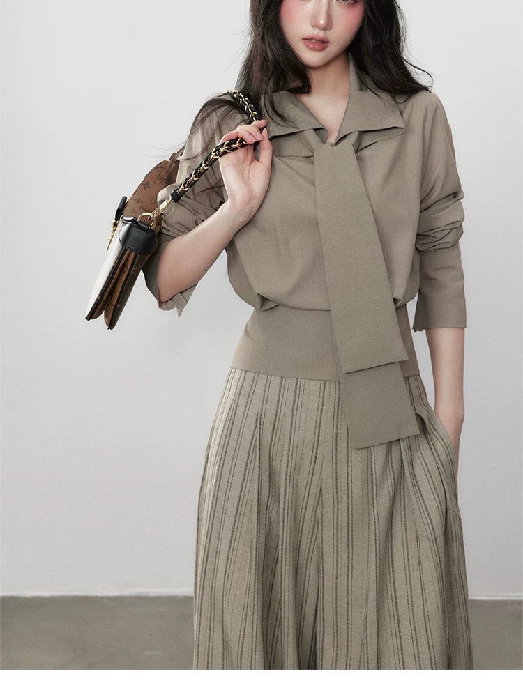 誉芝yuzhi 慵懒感宽松秋季通勤百搭系带气质简约显瘦长袖衬衫女