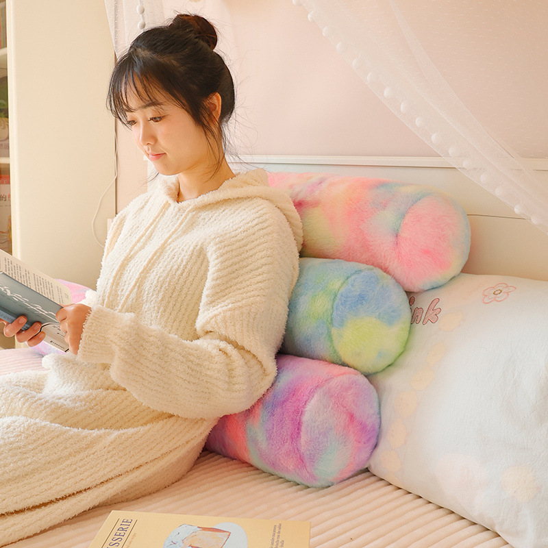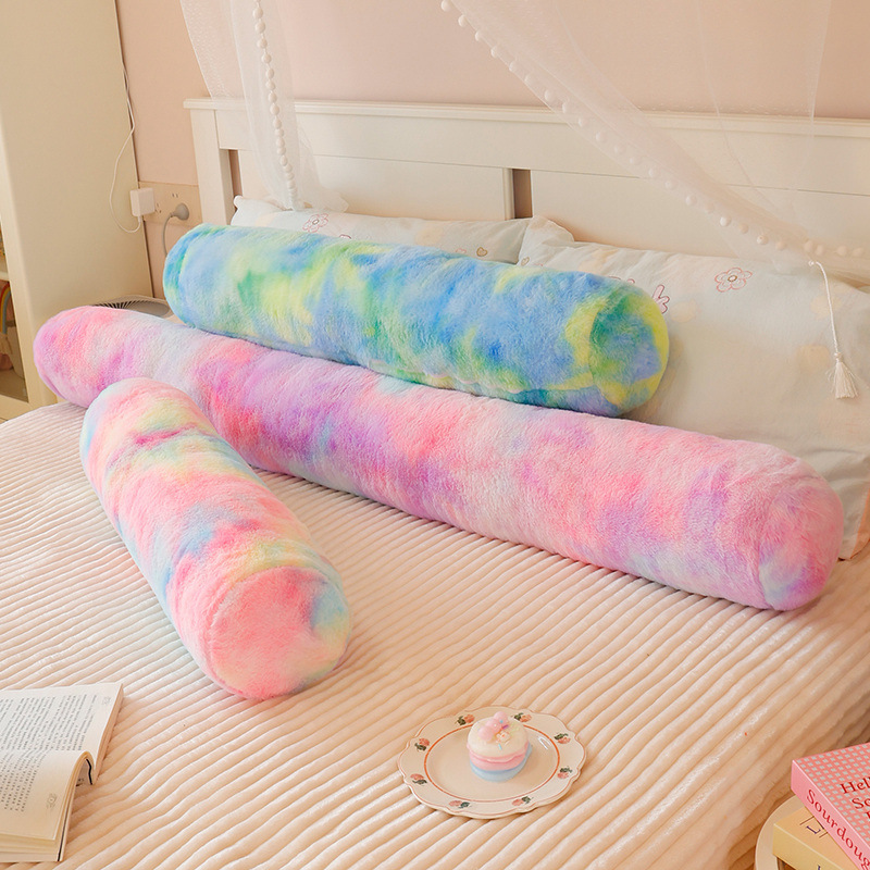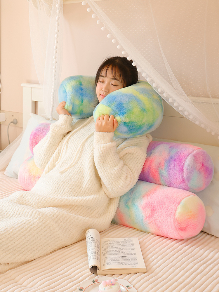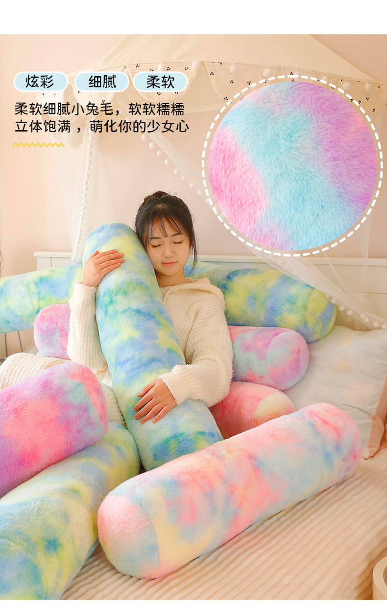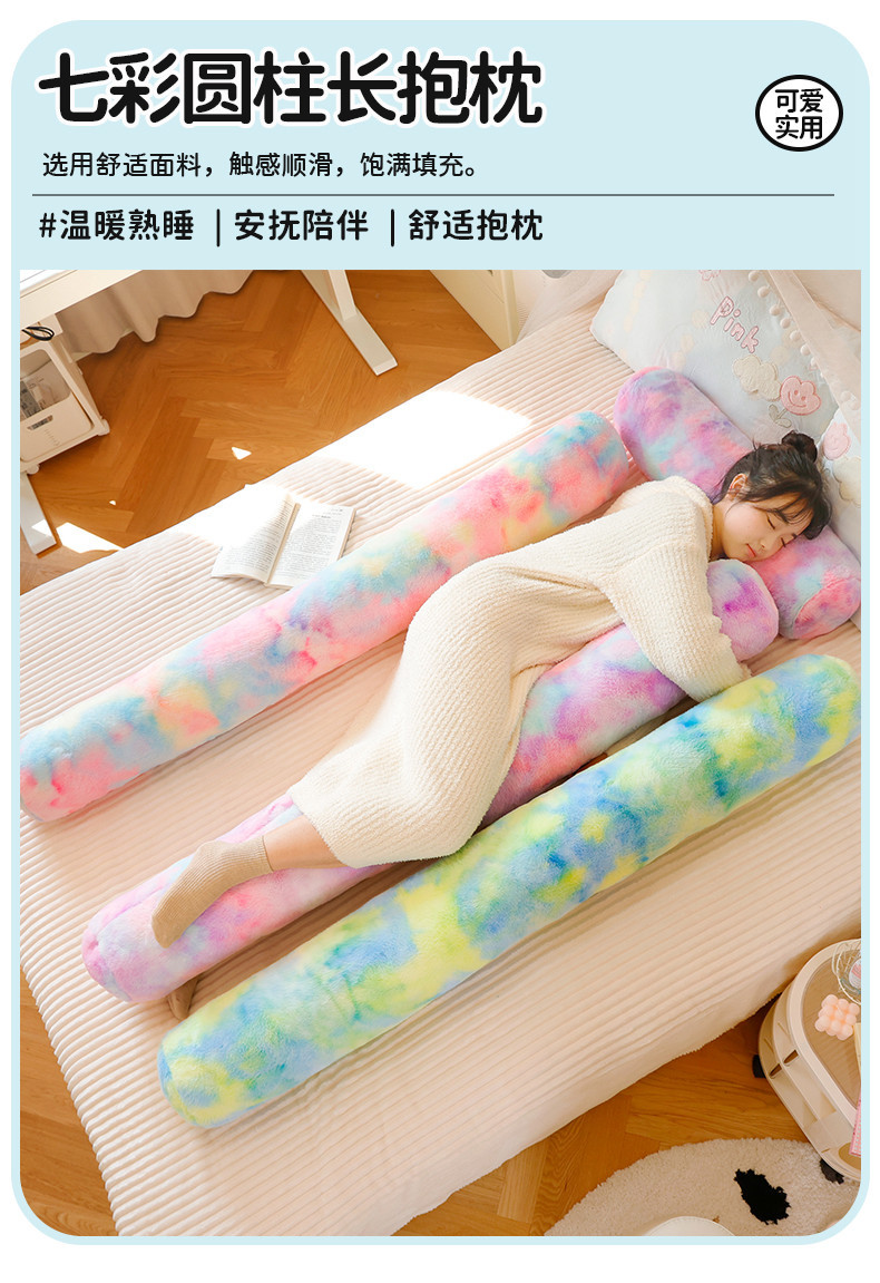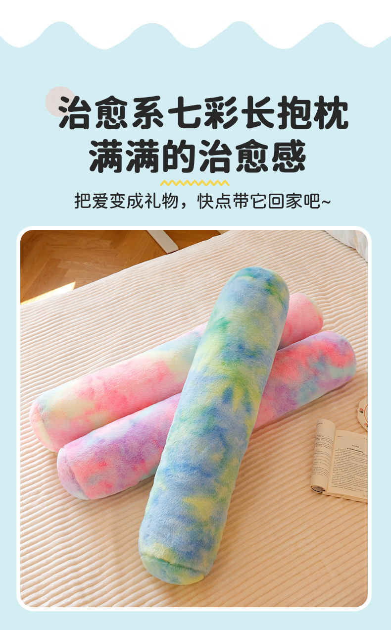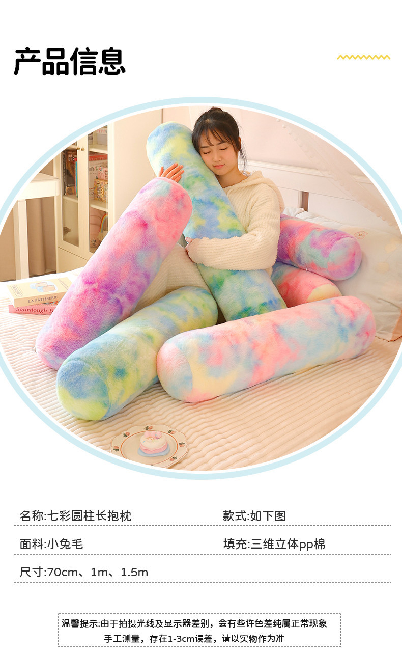 七彩圆柱长抱枕毛绒玩具布艺家居公仔