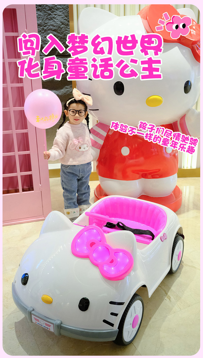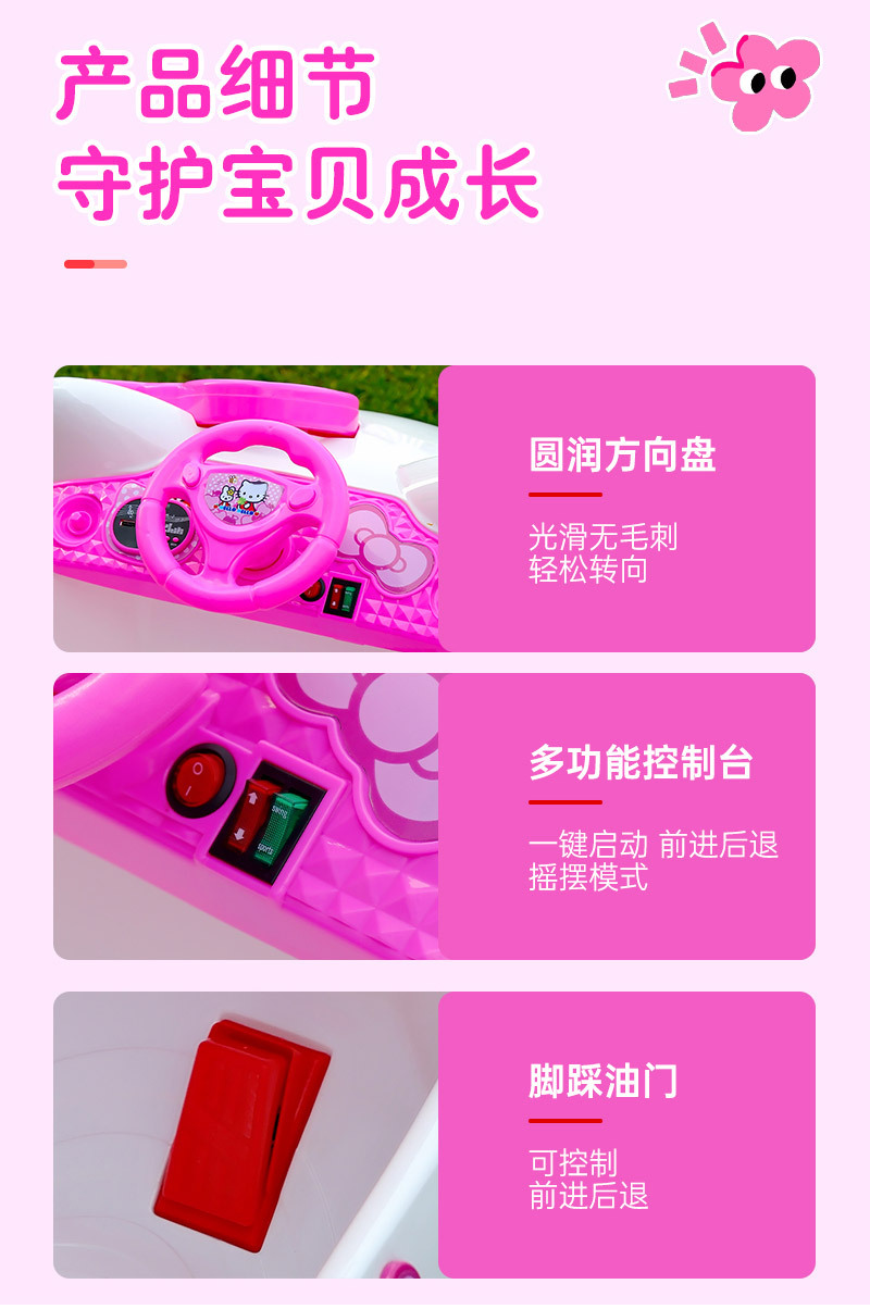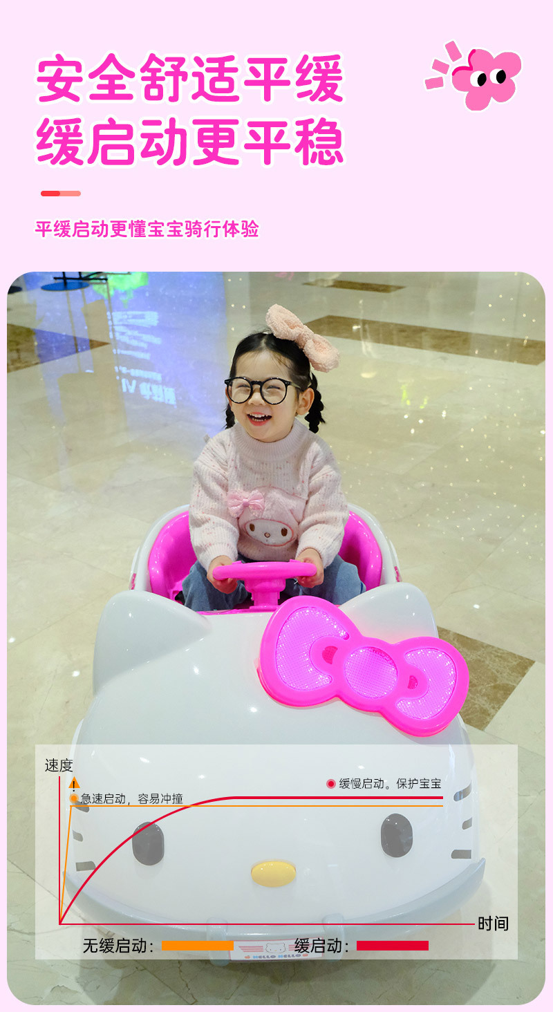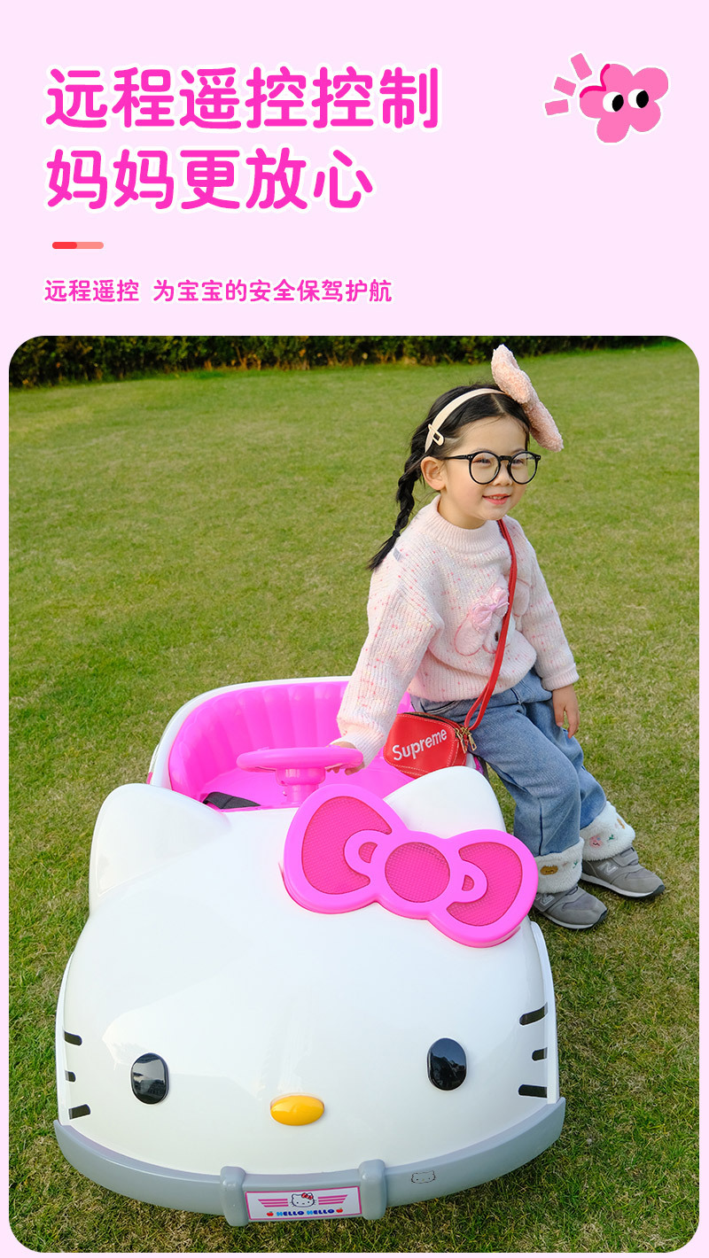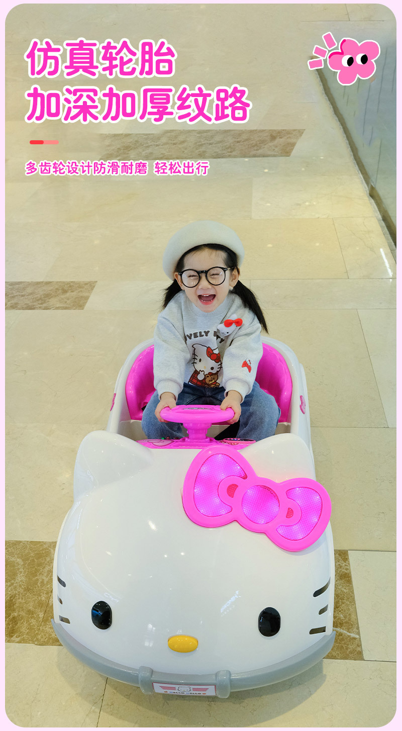 儿童电动车KT猫四轮遥控汽车可坐人摇摆可爱男女孩宝宝玩具车童车