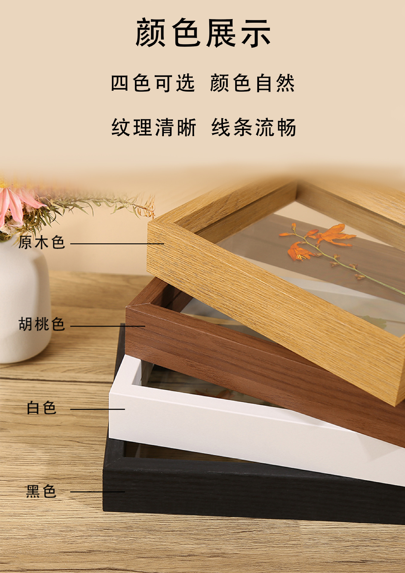 关键词:双面透明玻璃,植物标本创意画框,木质书法装裱框