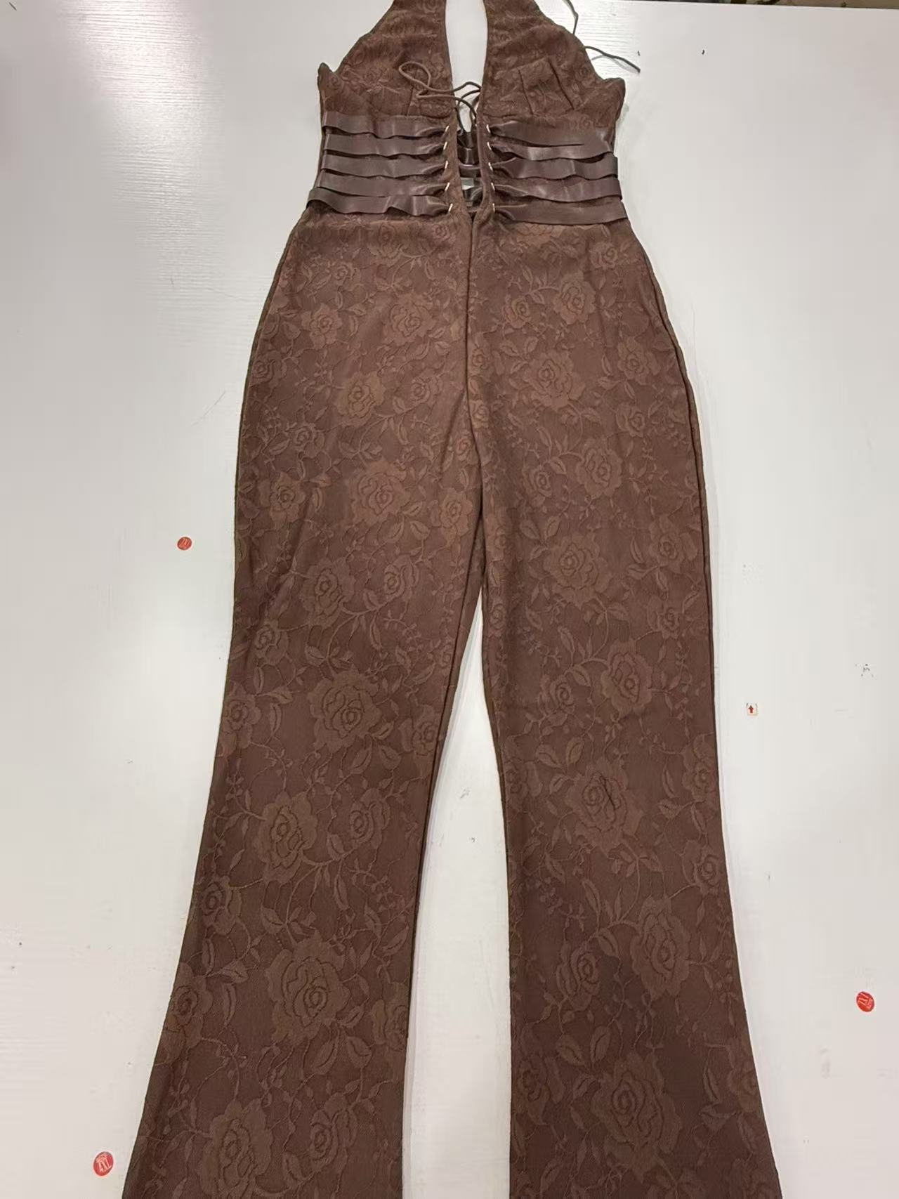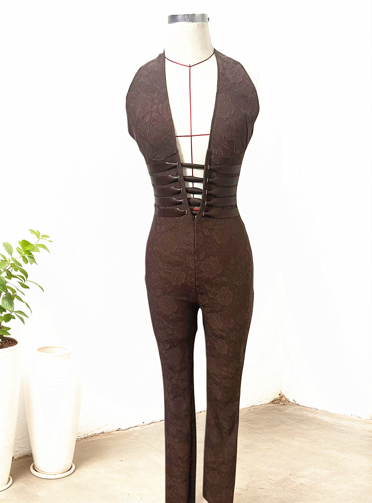 2025跨境爆款女士性感吊带 V 领紧身无袖吊带背心交叉绷带连身裤