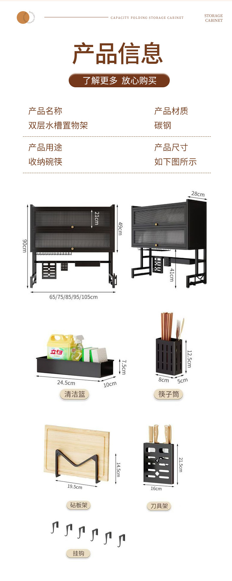 厨房洗碗槽水池台面置物架水槽防尘碗柜收纳储物沥水架餐具收纳