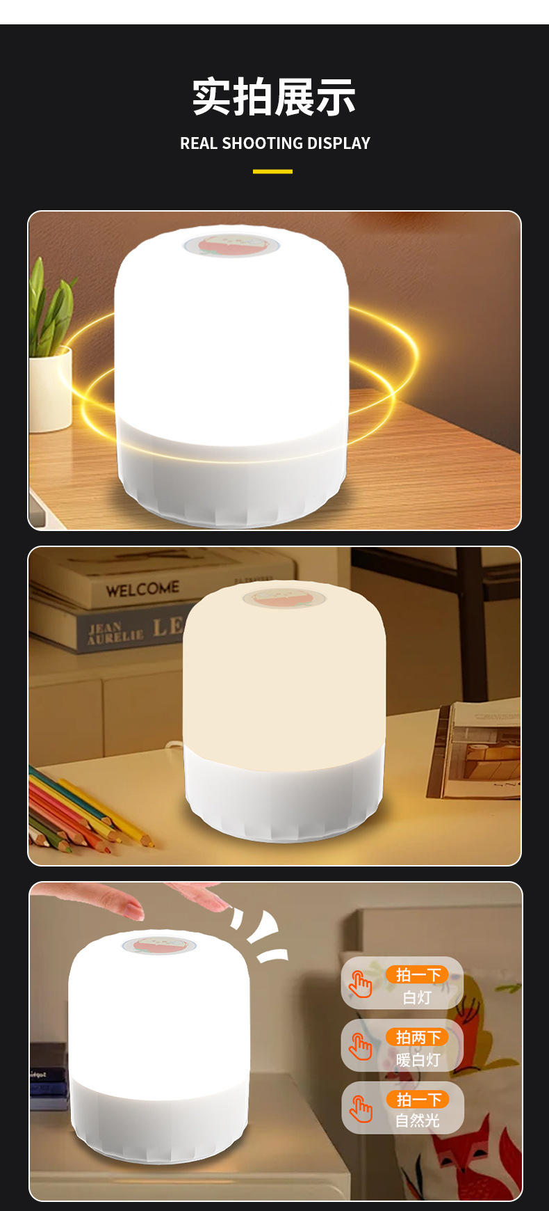 [ 商业 ] 2024年新款小夜灯USB可充电照明灯床头灯家用拍拍灯LED语音灯