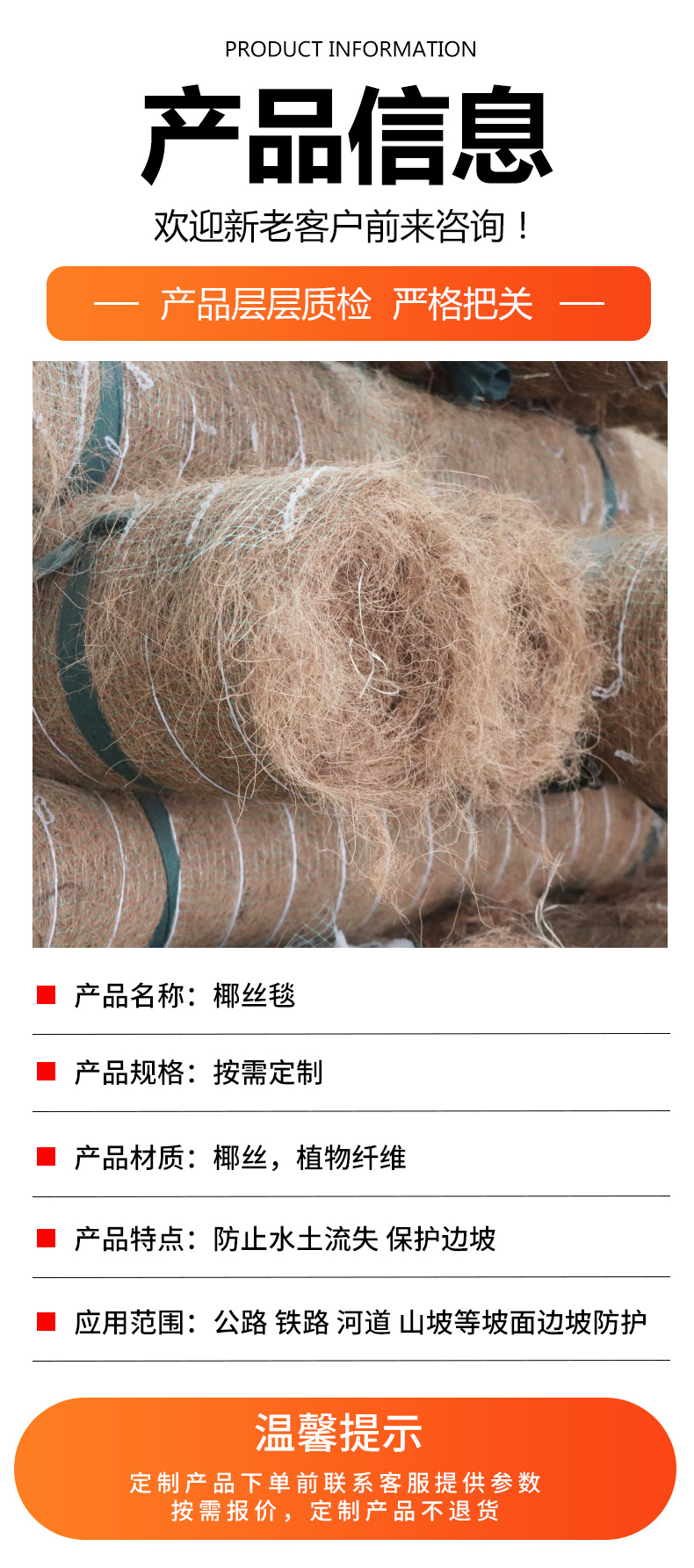 椰丝毯生态绿化护坡矿山修复山体复绿植物纤维抗冲击固坡椰丝毯