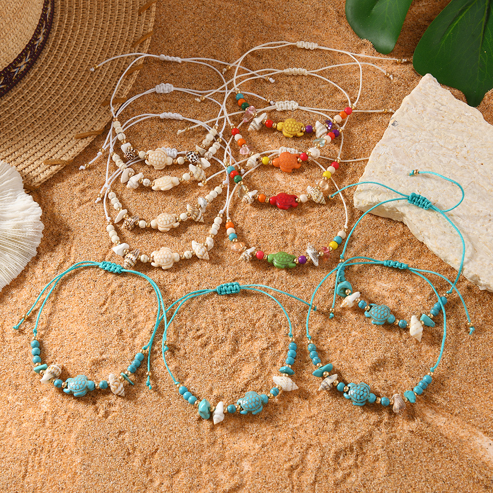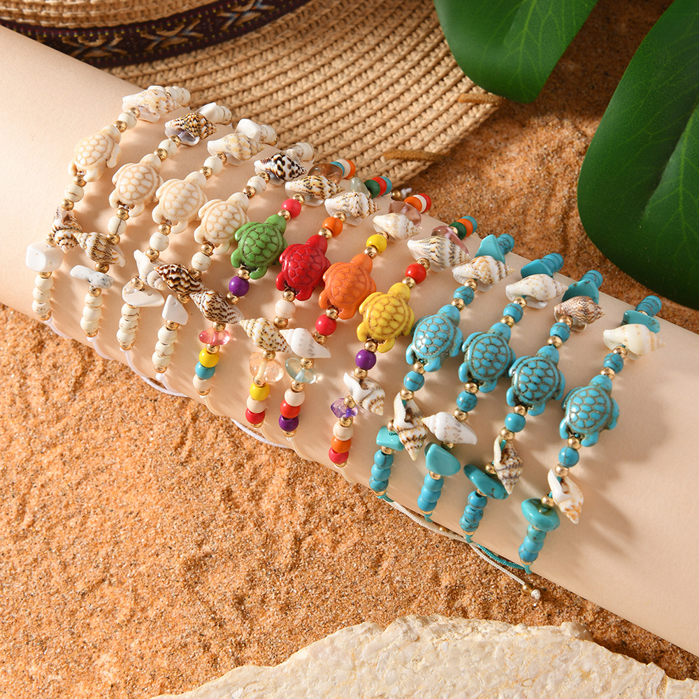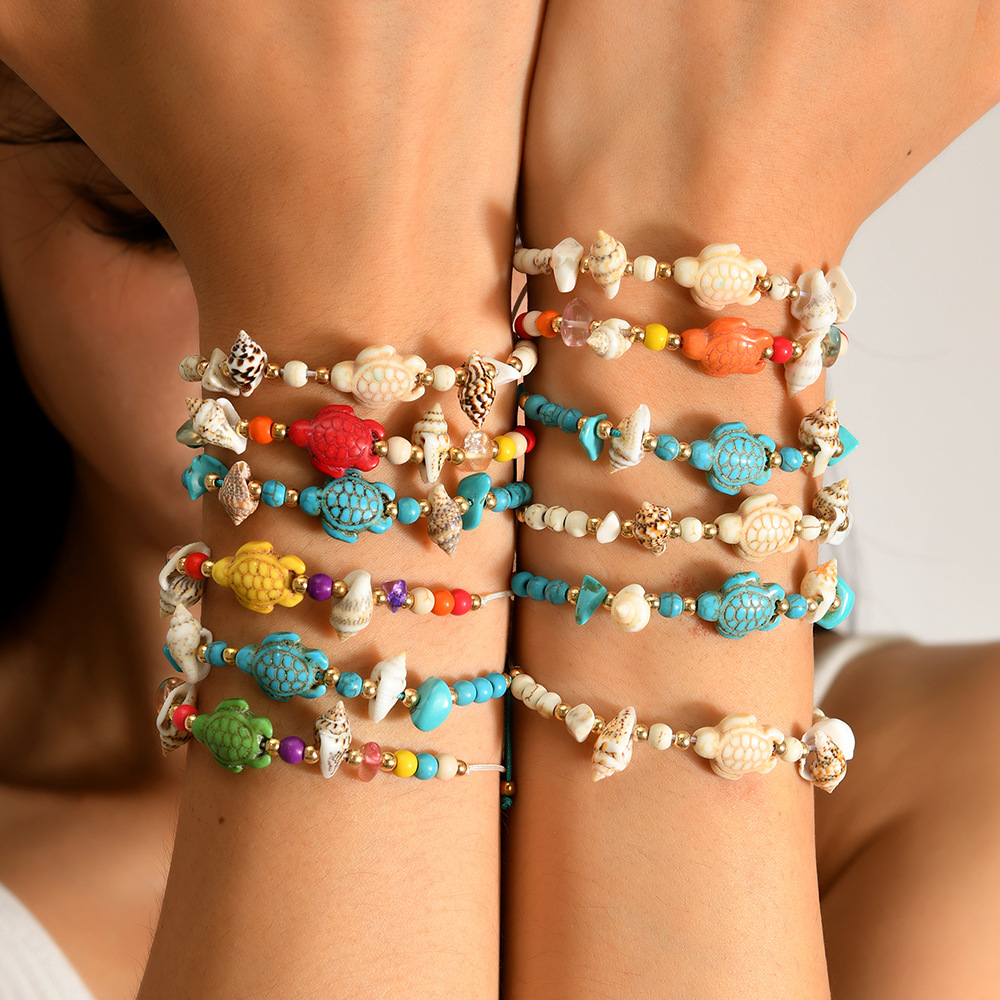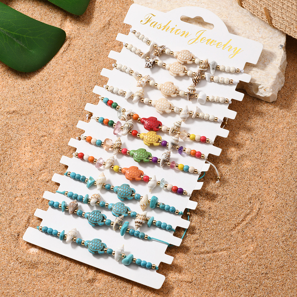 12pc亚马逊跨境热销松石海星海螺碎石手链沙滩海洋风时尚男女友谊