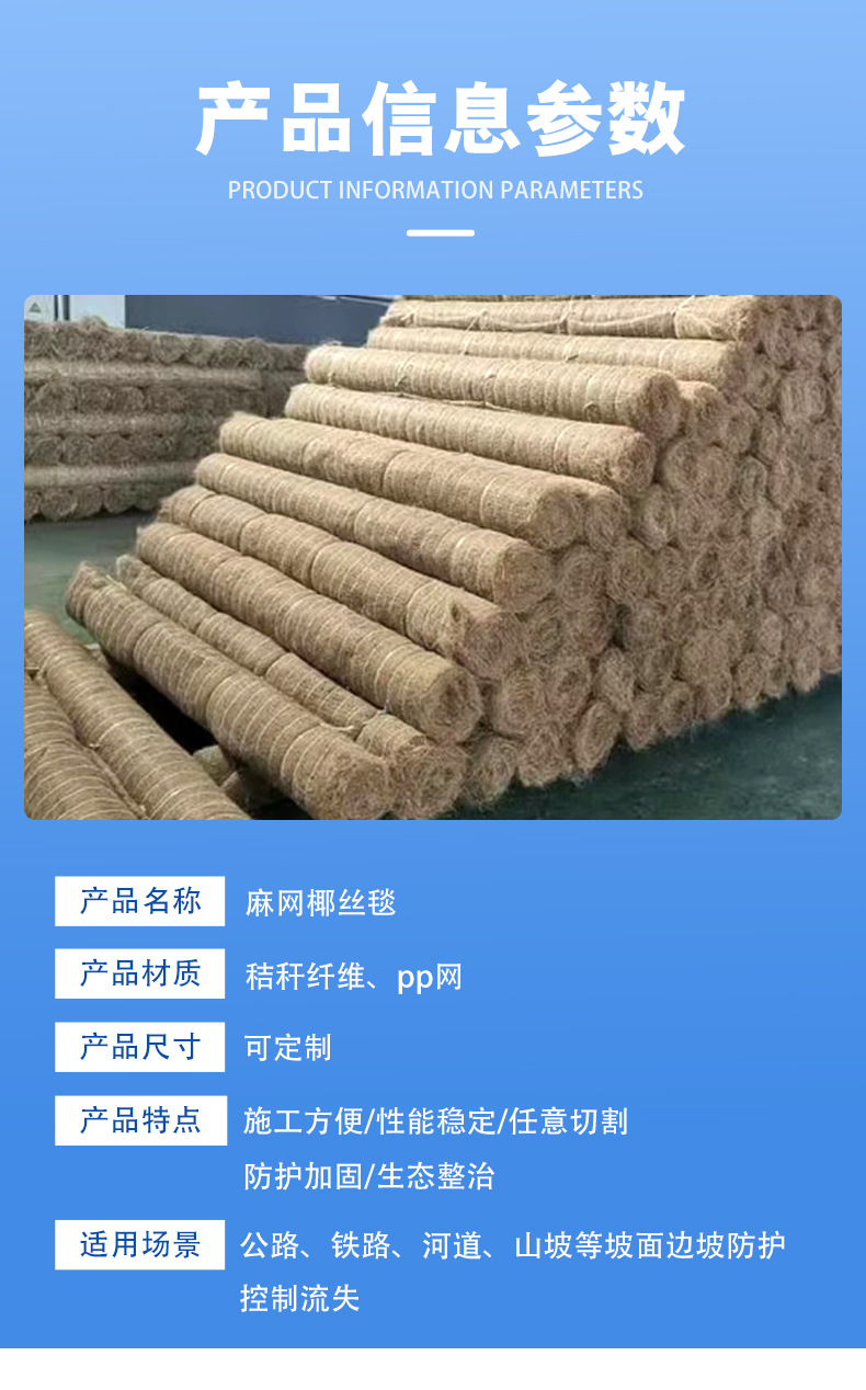 厂家现货秸秆纤维帘床网椰丝毯护坡河道防护工程用抗冲加筋椰丝毯