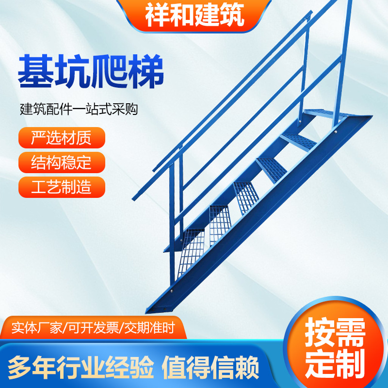 厂家供应安全防滑基坑爬梯工地施工基坑爬梯带扶手护栏基坑爬梯
