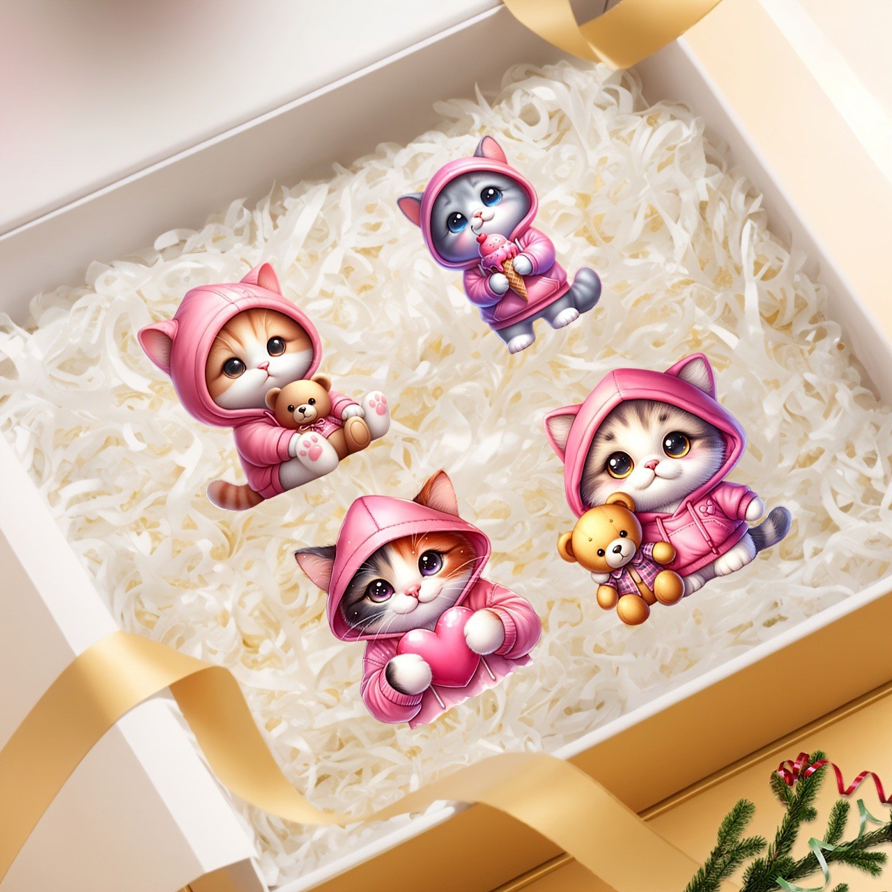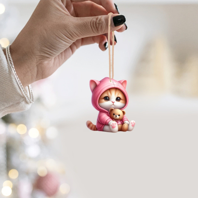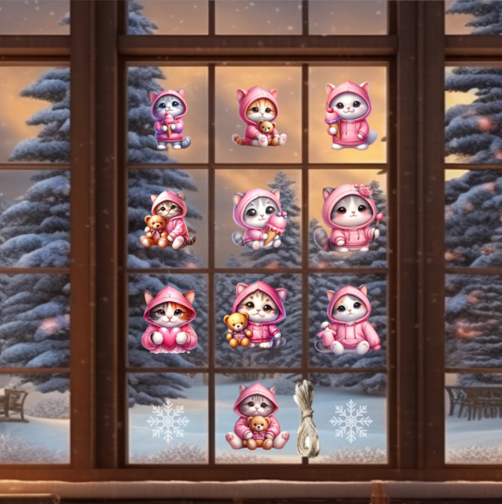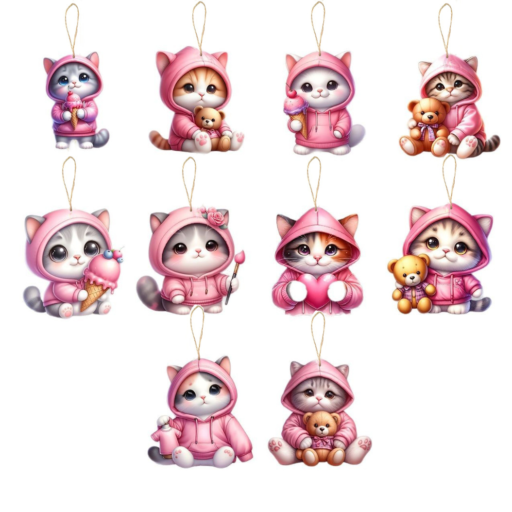 新品20件创意粉色猫咪木质饰品挂件适用于节日派对家居装饰布置