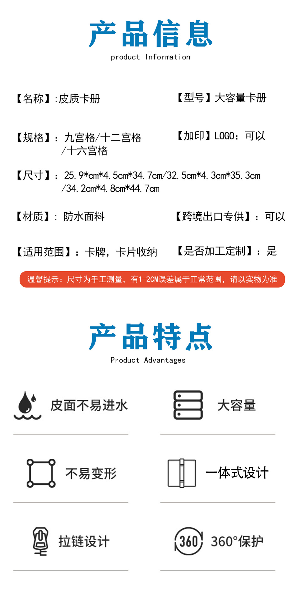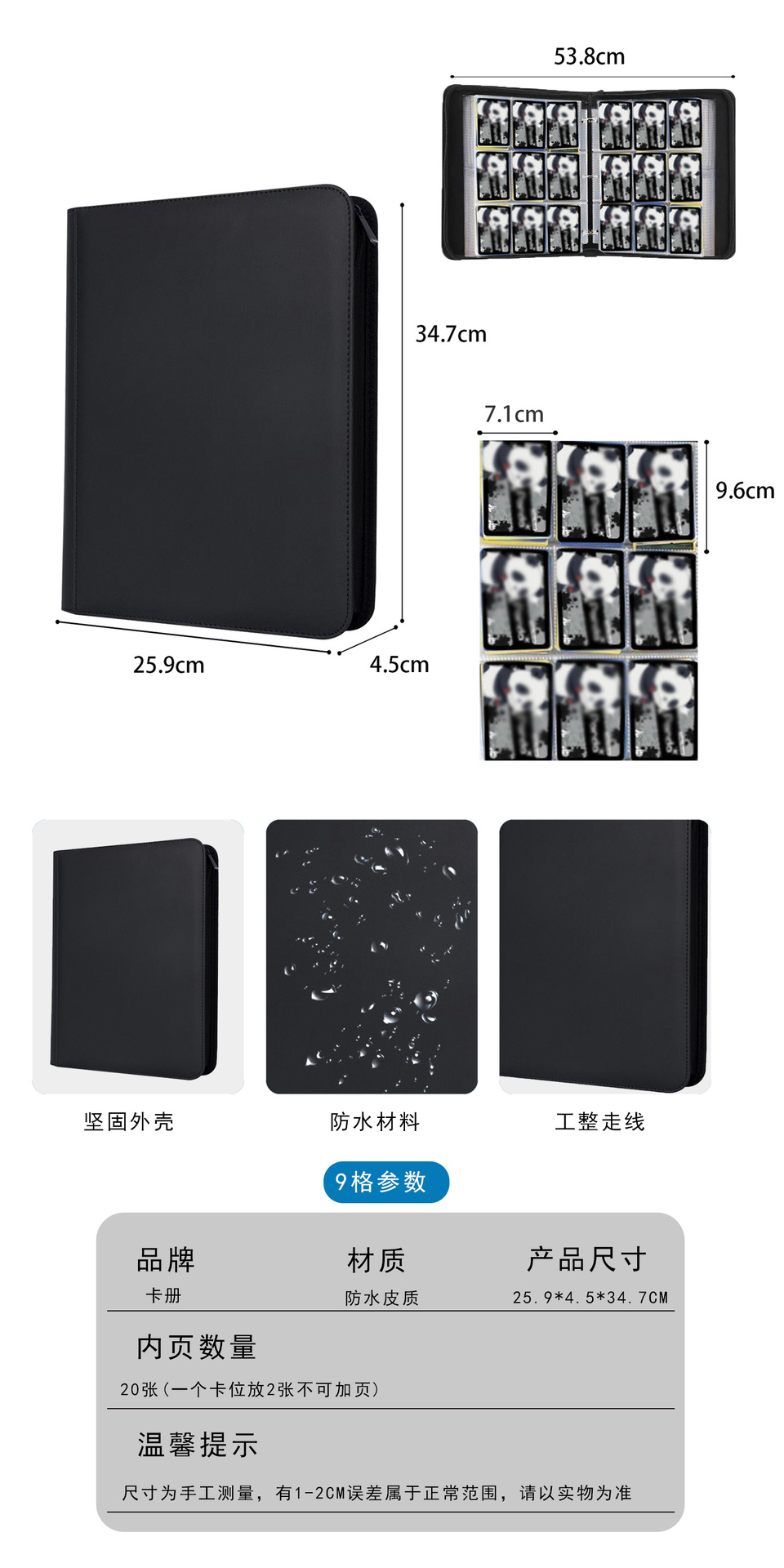 亚马逊黑色12格拉链款大容量卡包宝可梦动漫游戏卡片收藏册集卡册