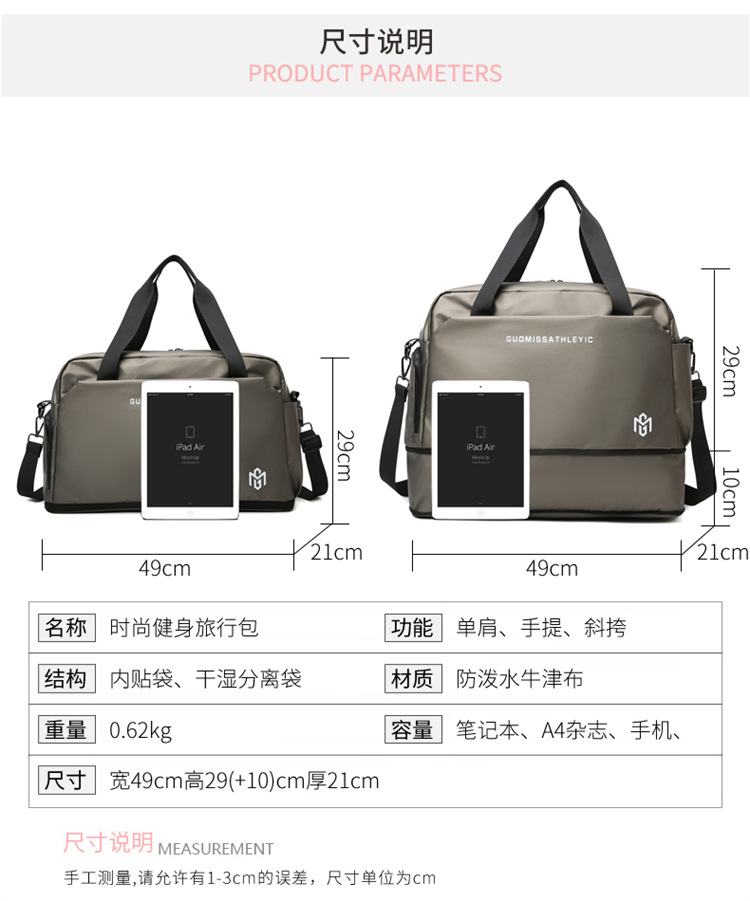 旅行包大容量男女运动训练包健身包手提短途包轻便时尚行李旅行包