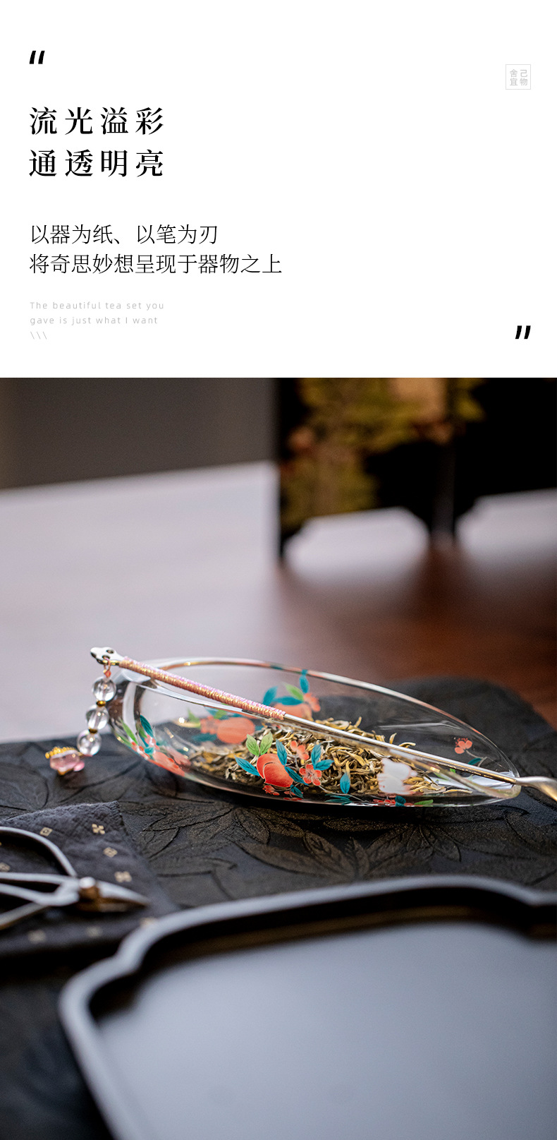 2025新款玉兔桃夭冰清高硼硅透明玻璃茶则精致加厚观茶器茶道零配