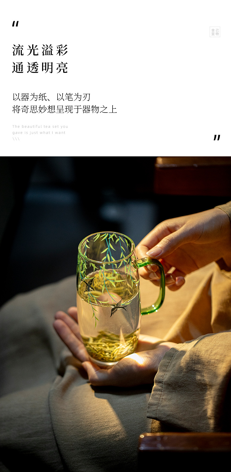 [ 商业 ] 高硼硅玻璃茶杯带盖子办公室手把水杯高颜值花茶杯子不烫手