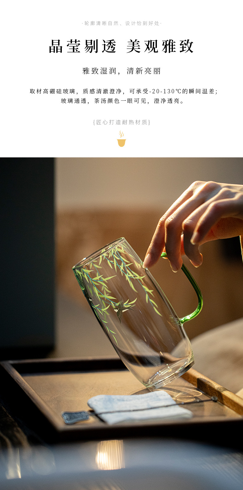 高硼硅玻璃茶杯带盖子办公室手把水杯高颜值花茶杯子不烫手
