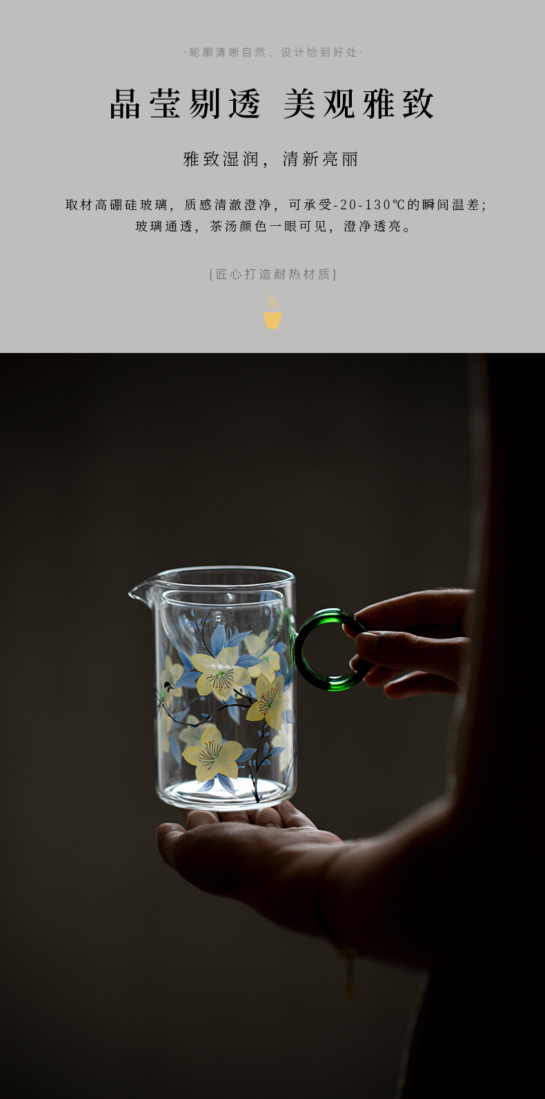 高硼硅公道杯耐高温透明玻璃专业泡茶公杯茶海茶水分离飘逸日式