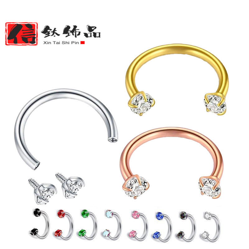 F136钛马蹄形穿刺鼻环C字杆内螺旋鼻中隔环唇钉耳环人体穿刺饰品