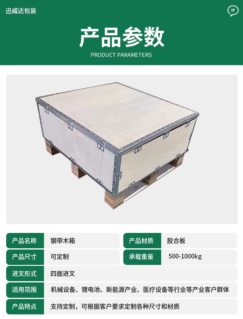关键词:钢带包装木箱,木质打包装箱,包装箱