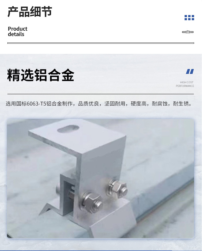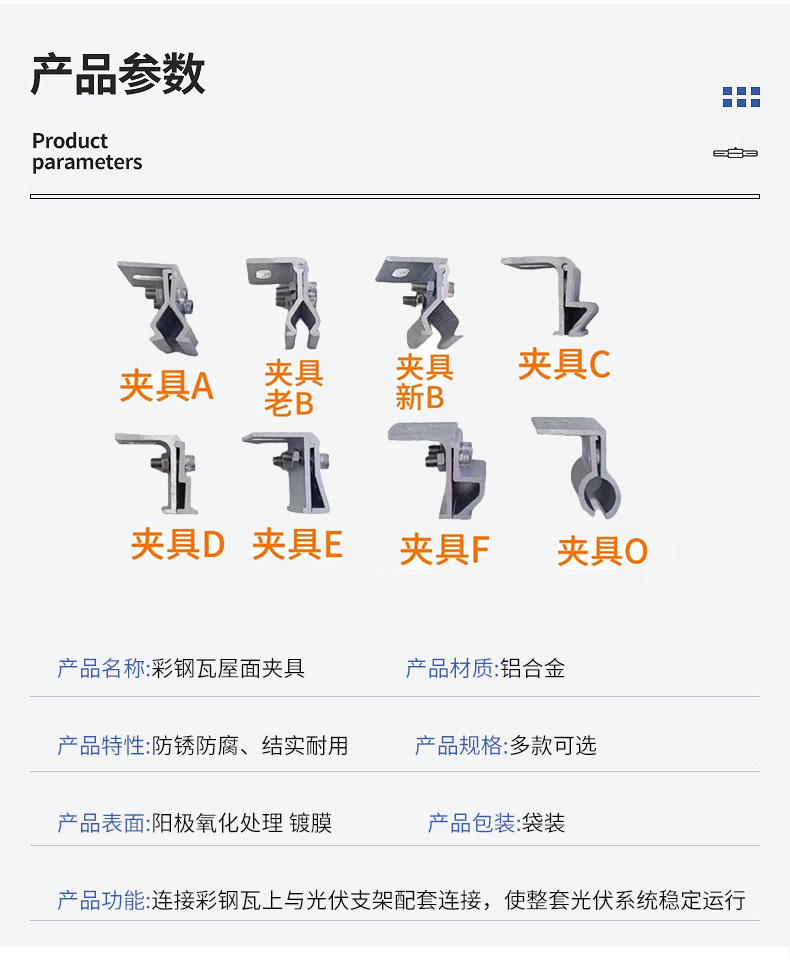 厂家定制光伏夹具厂家铝合金彩钢瓦夹具批发多种规格太阳能光伏配