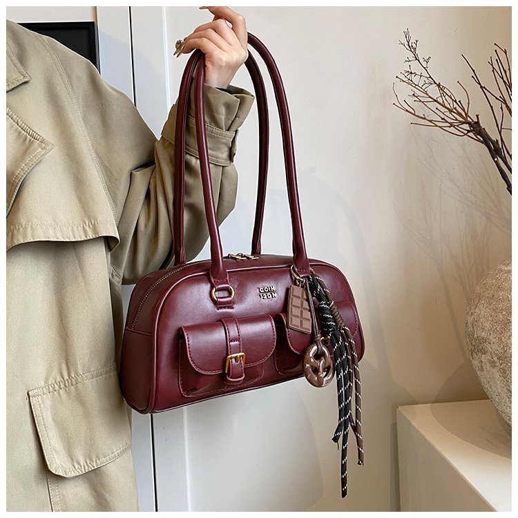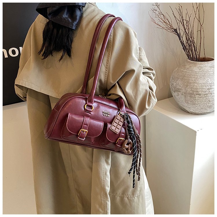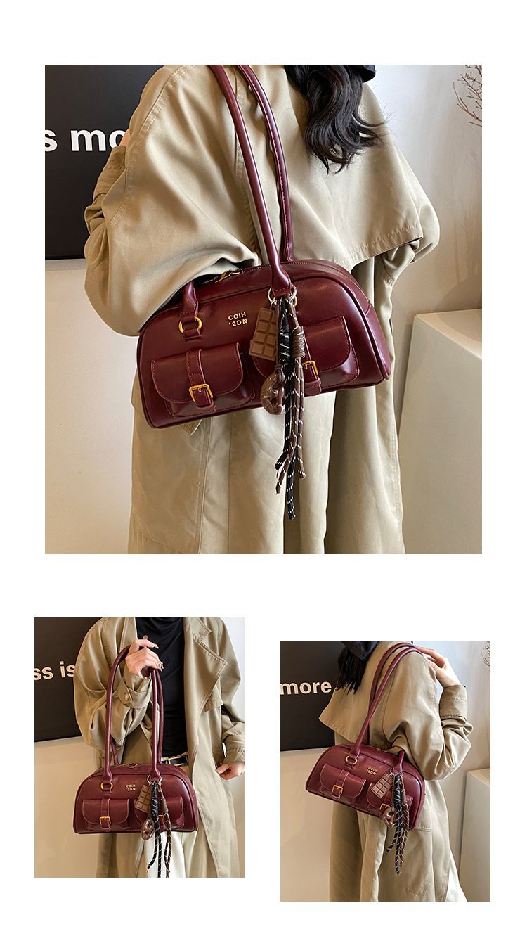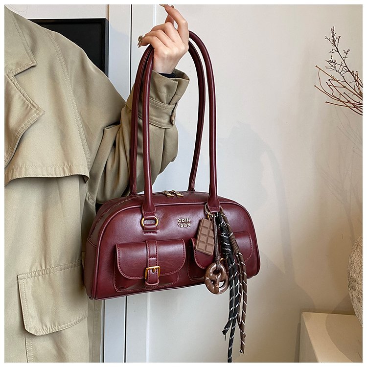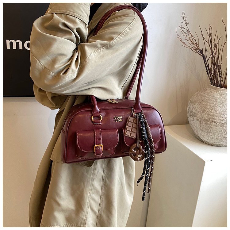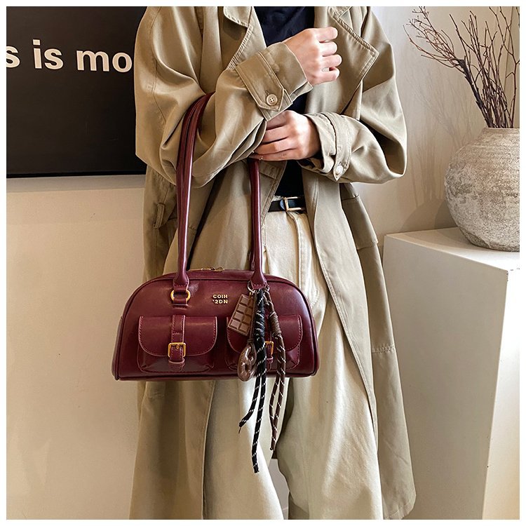 南风Chio2nd 桑巴酒廊枕头包包女红色复古波士顿手提包通勤单肩包