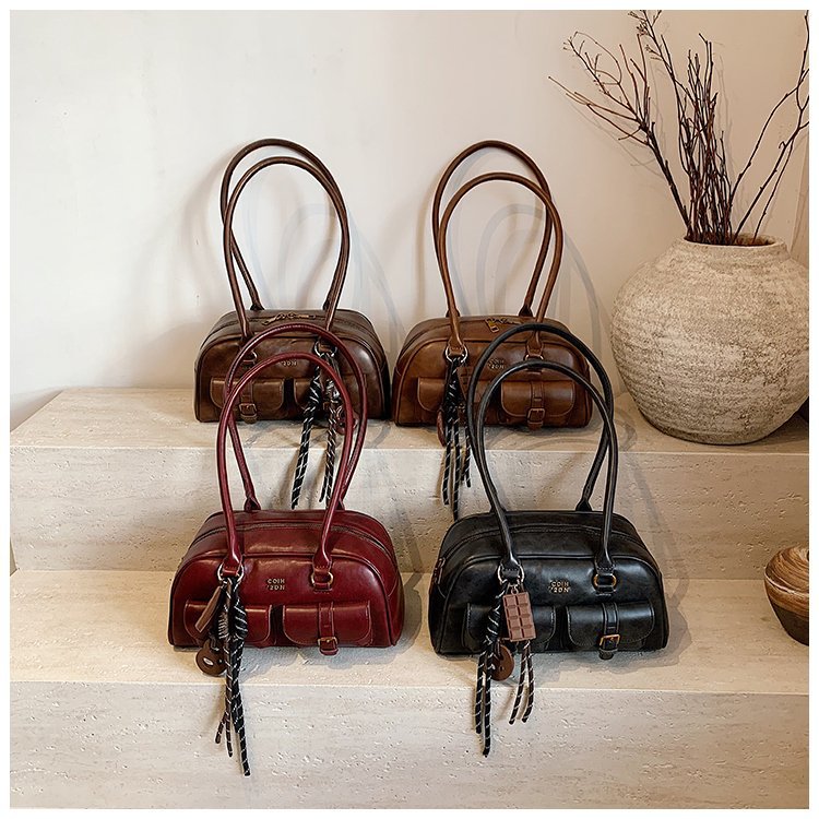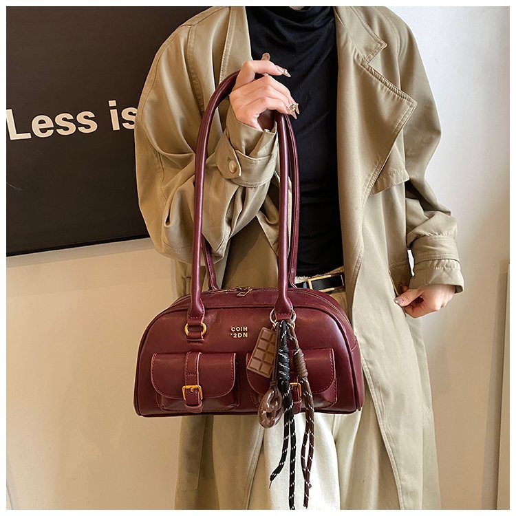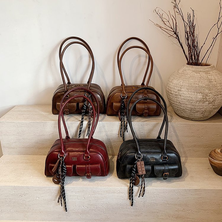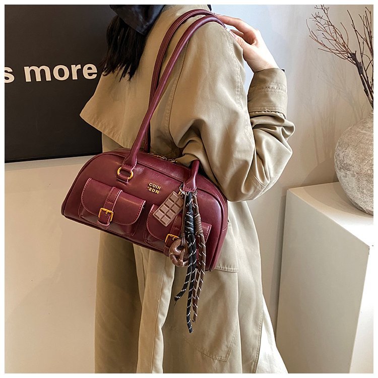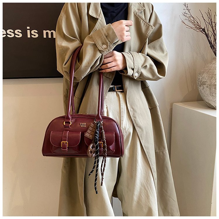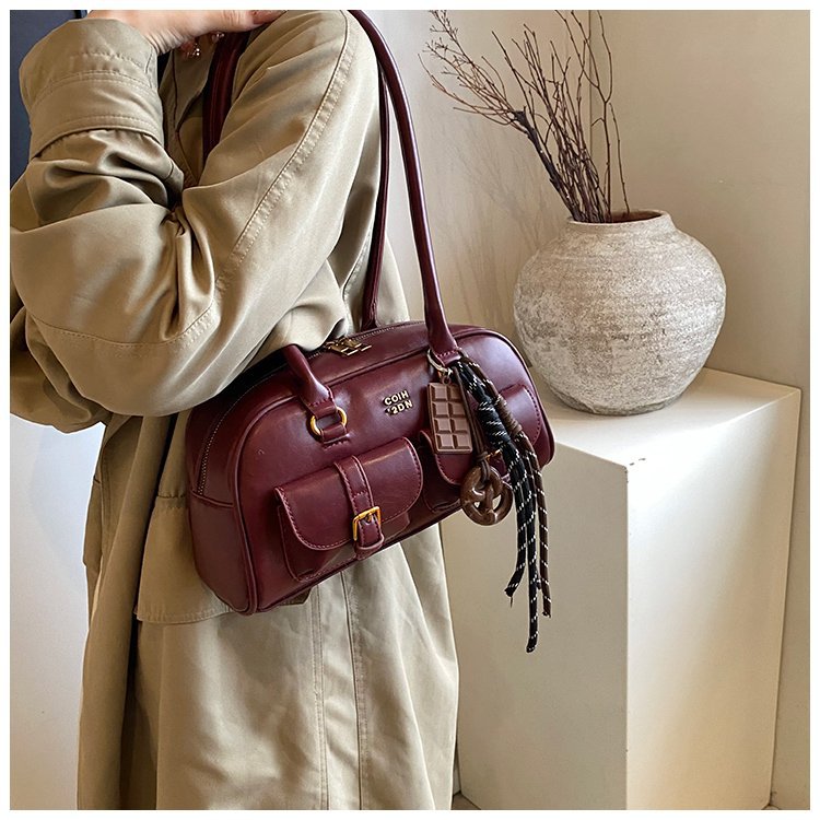南风Chio2nd 桑巴酒廊枕头包包女红色复古波士顿手提包通勤单肩包