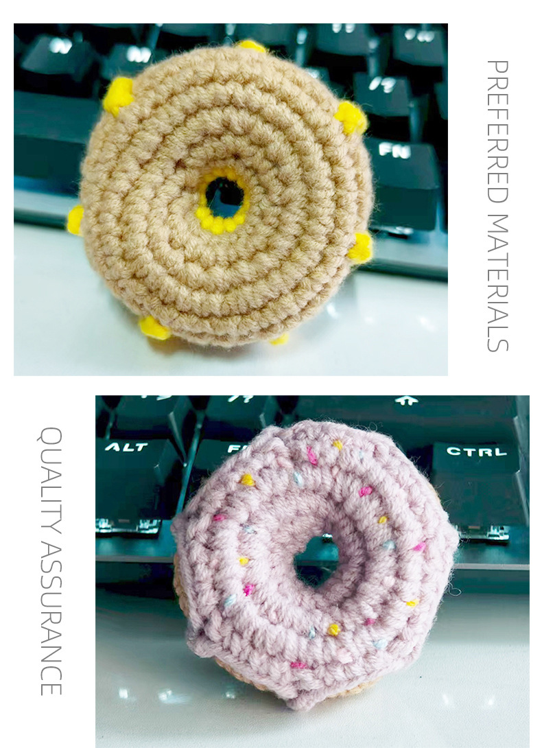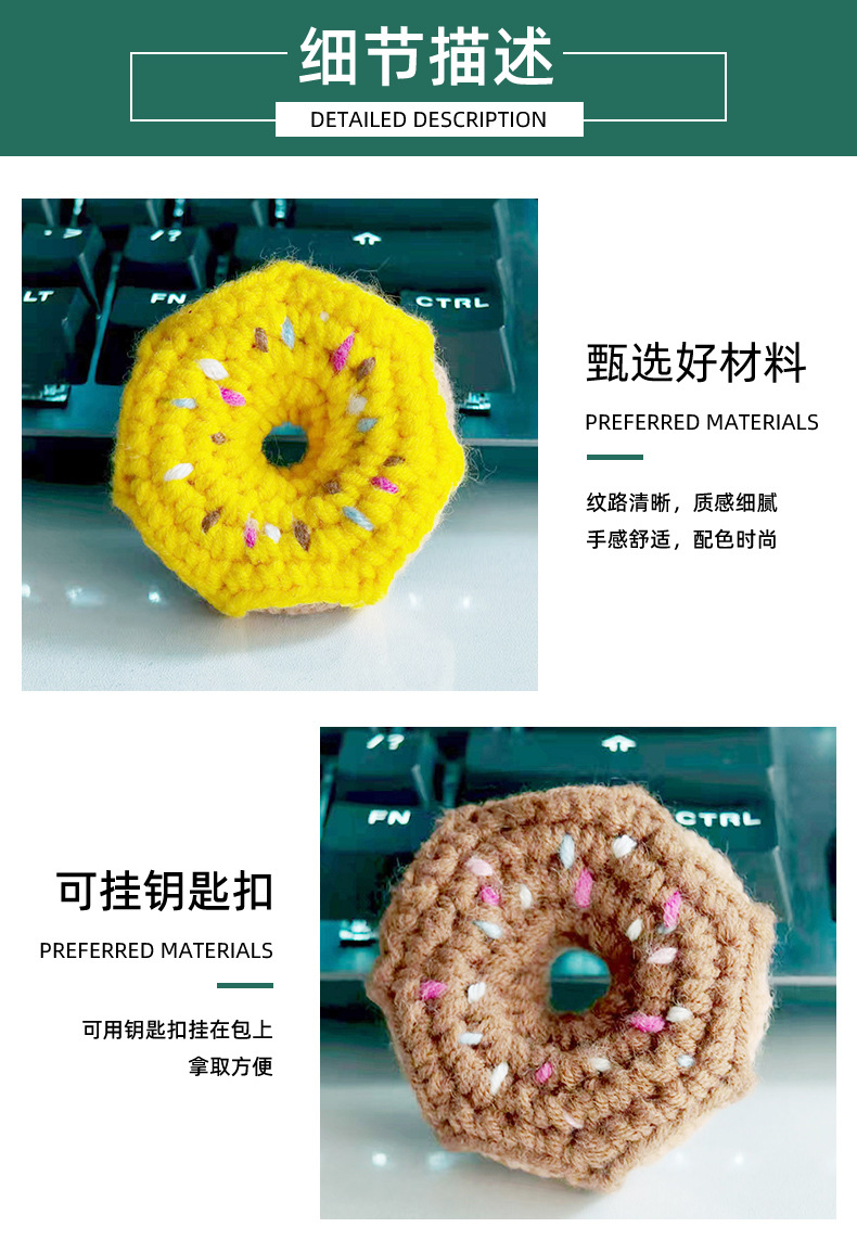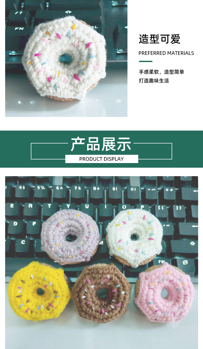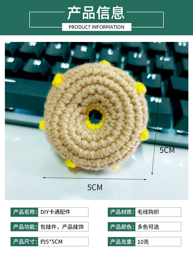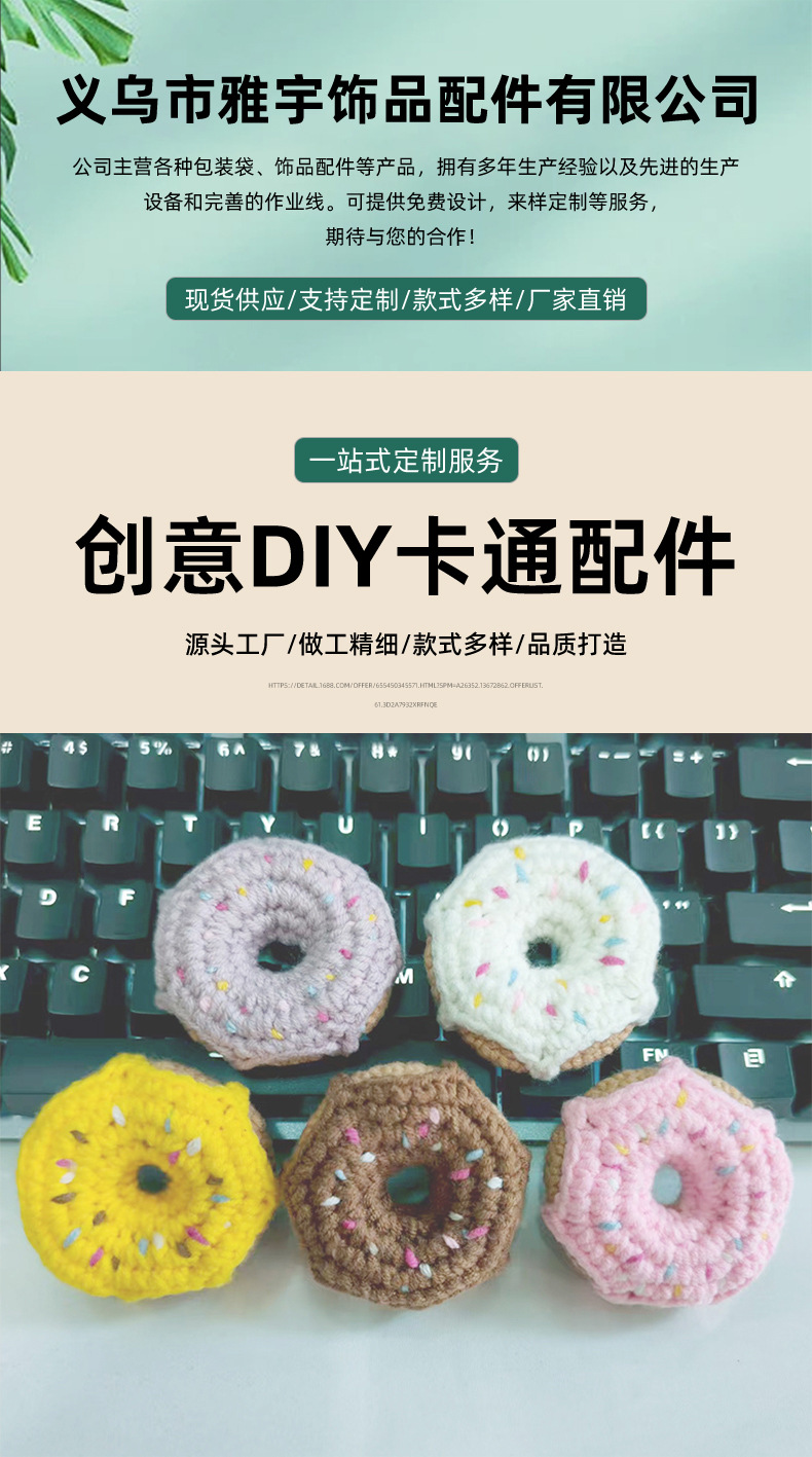 厂家直供纯手工毛线钩织创意配件成品甜甜圈diy包包手机饰品挂件