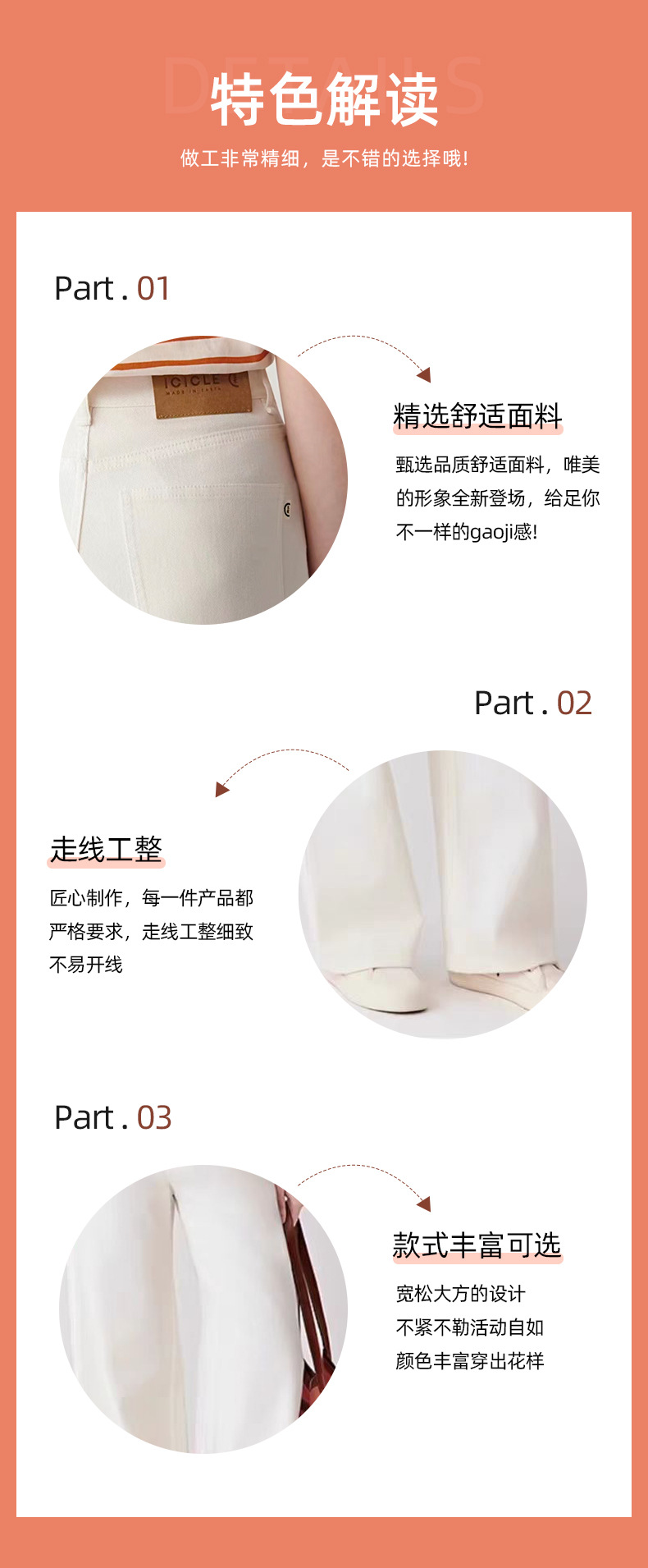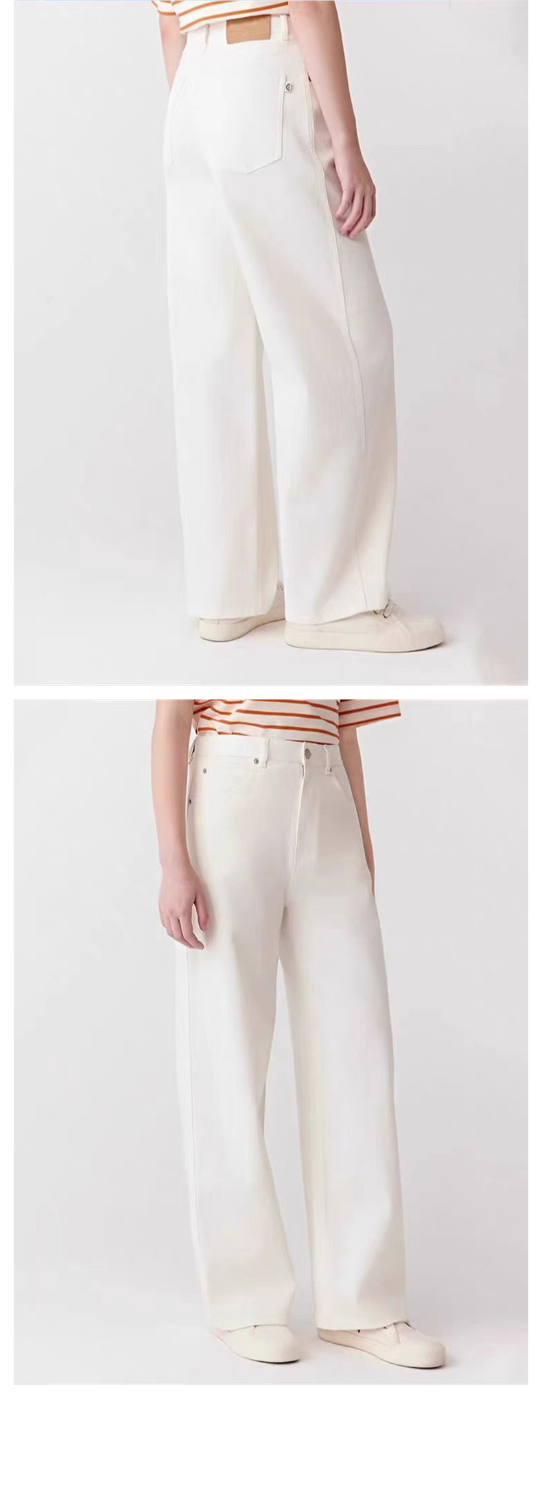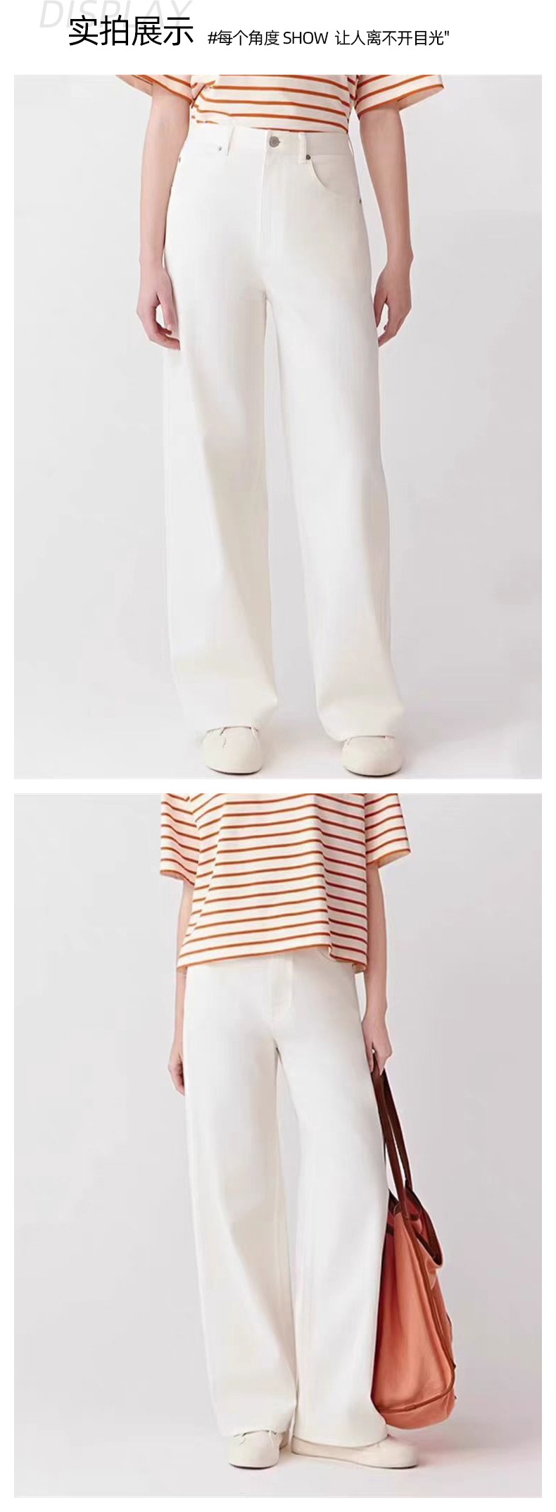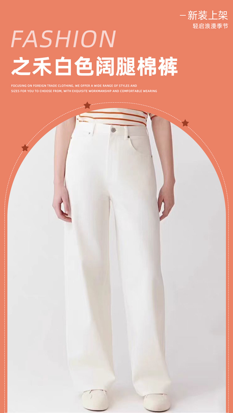 欧美跨境女士秋季新款棉弹牛仔布高腰阔腿牛仔裤白色显瘦休闲裤