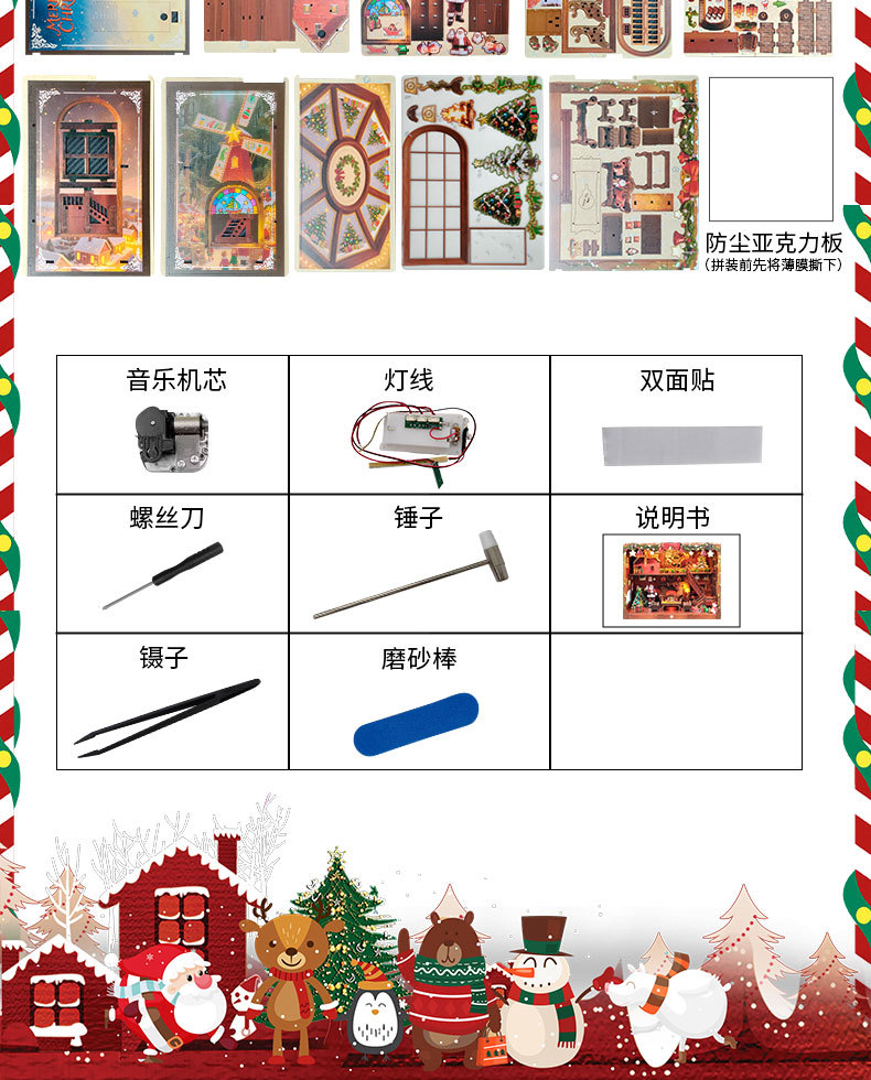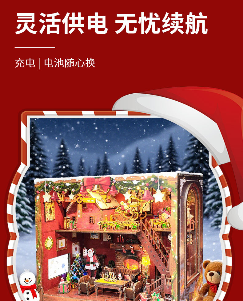 关键词:跨境diy书立小屋欢乐圣诞夜拼装玩具微缩场景模型益智拼图热销