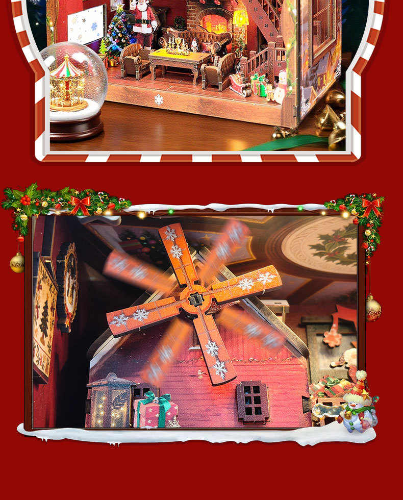 跨境diy书立小屋欢乐圣诞夜拼装玩具微缩场景模型益智拼图热销