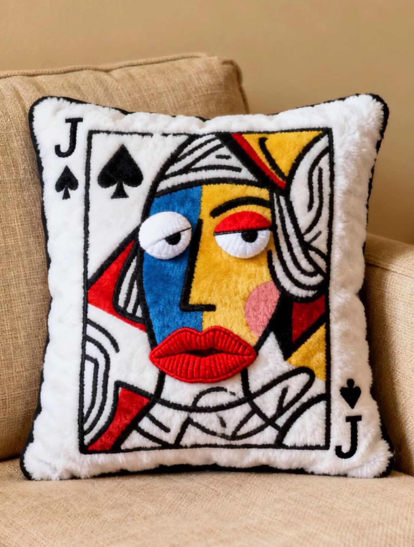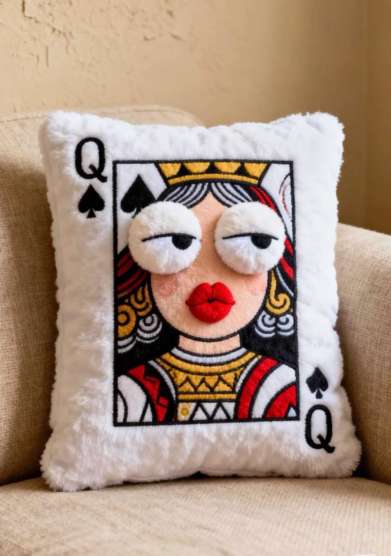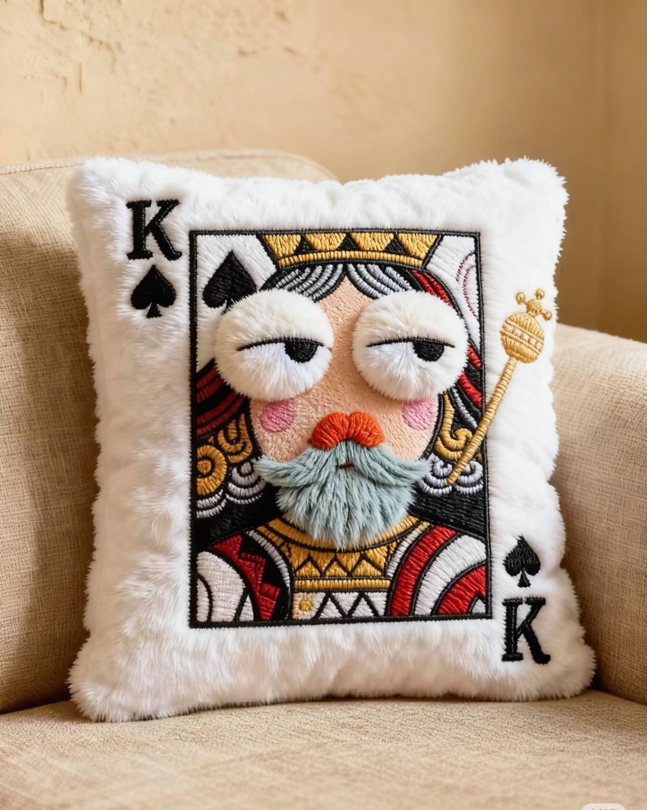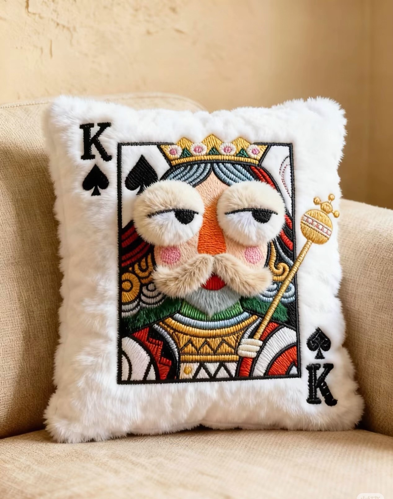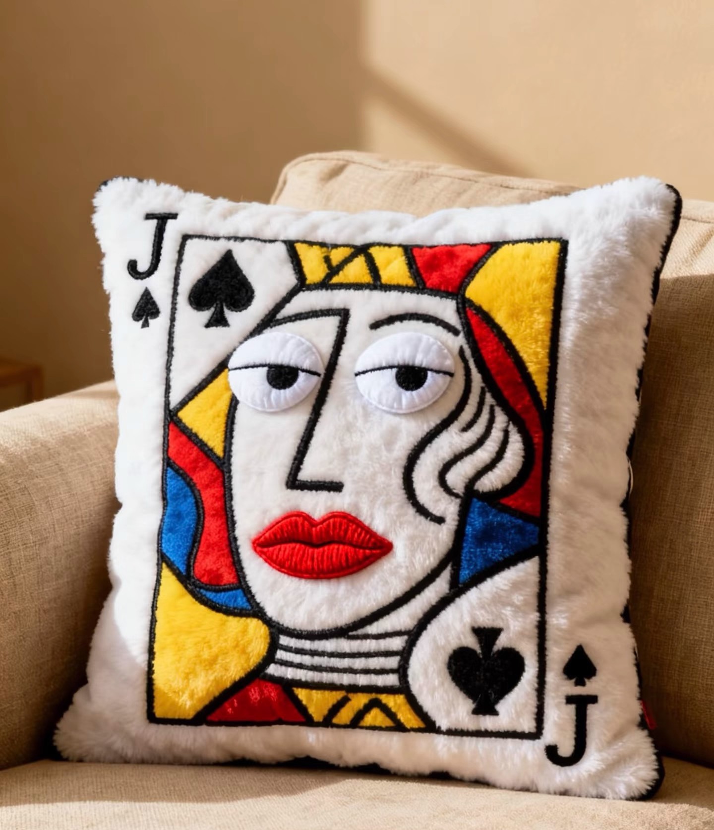 小红书爆款毛绒刺绣扑克牌刺绣抱枕靠垫高颜值趣味送朋友闺蜜礼物