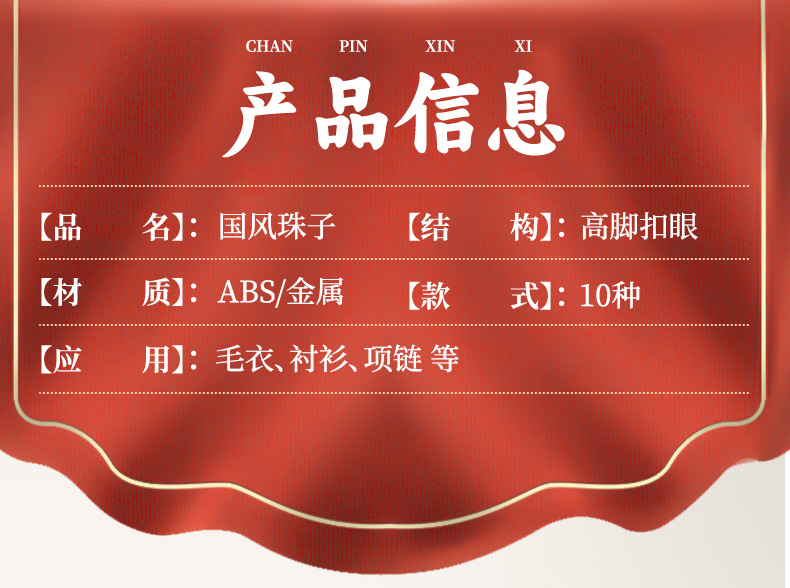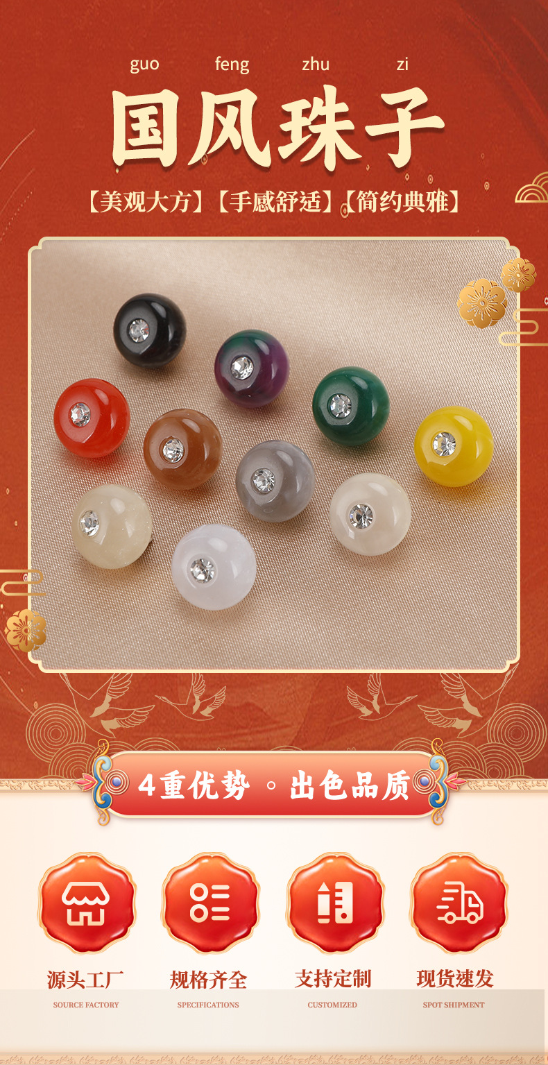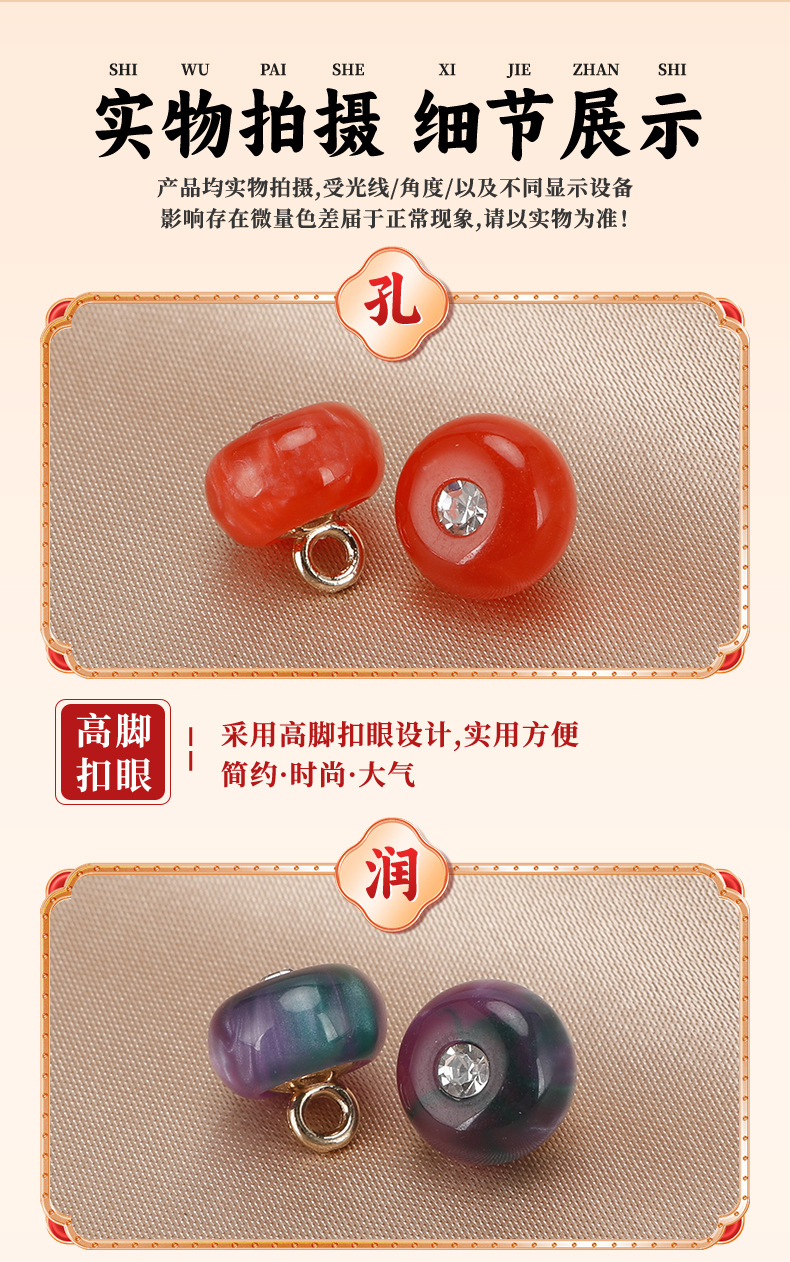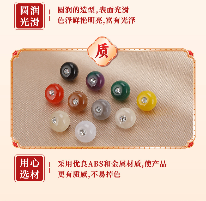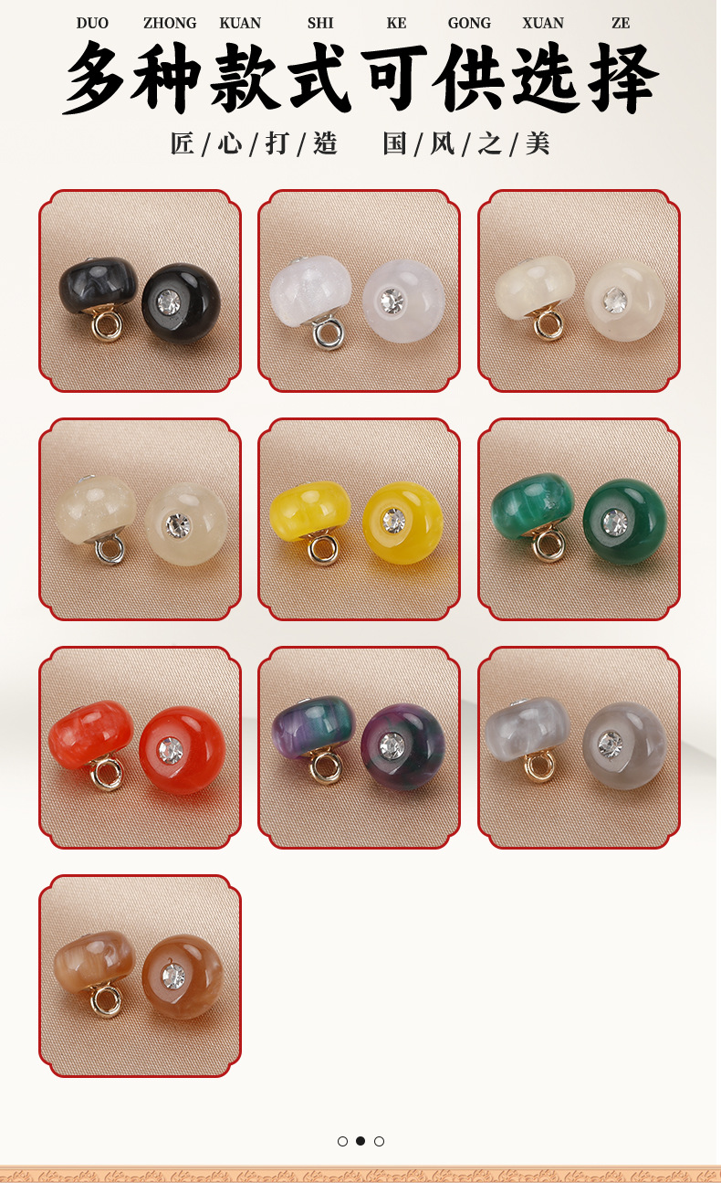 彩色镶钻玉珠中式树脂纽扣旗袍盘扣国风唐装汉服装饰扣服装配件