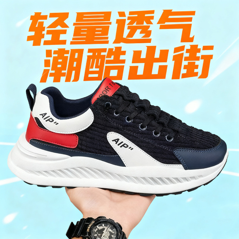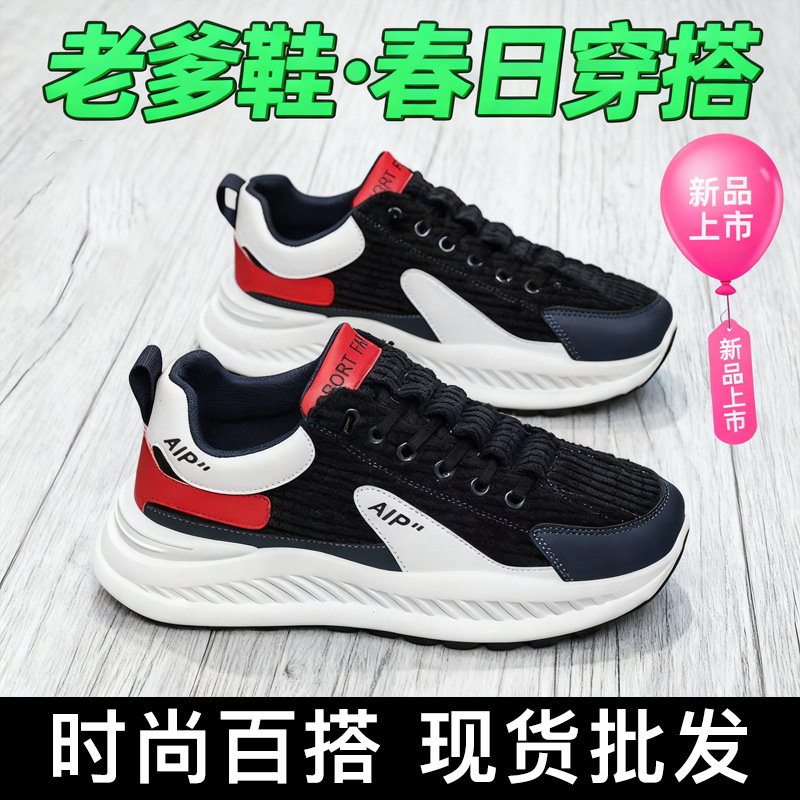男鞋2025春秋新款男士休闲鞋百搭厚底运动鞋透气跑步鞋潮流老爹鞋